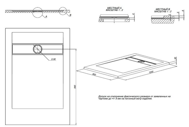 Вес изделия более чем на 20% выше, чем у поддонов из литьевого мрамора, поддон 120х80 весит более 50 кг. Слой Гелькоута до 2х мм.