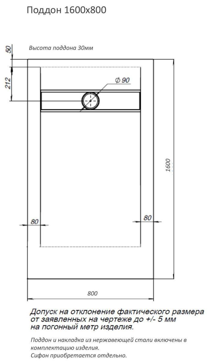 —Душевой поддон из искусственного камня Aquanet Delight 00258900 160х80 черный без каркаса