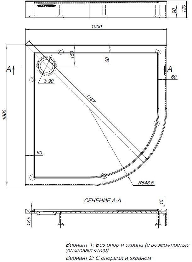 Душевой поддон из искусственного камня Aquanet Delta НФ-00009366 100х100 белый с каркасом