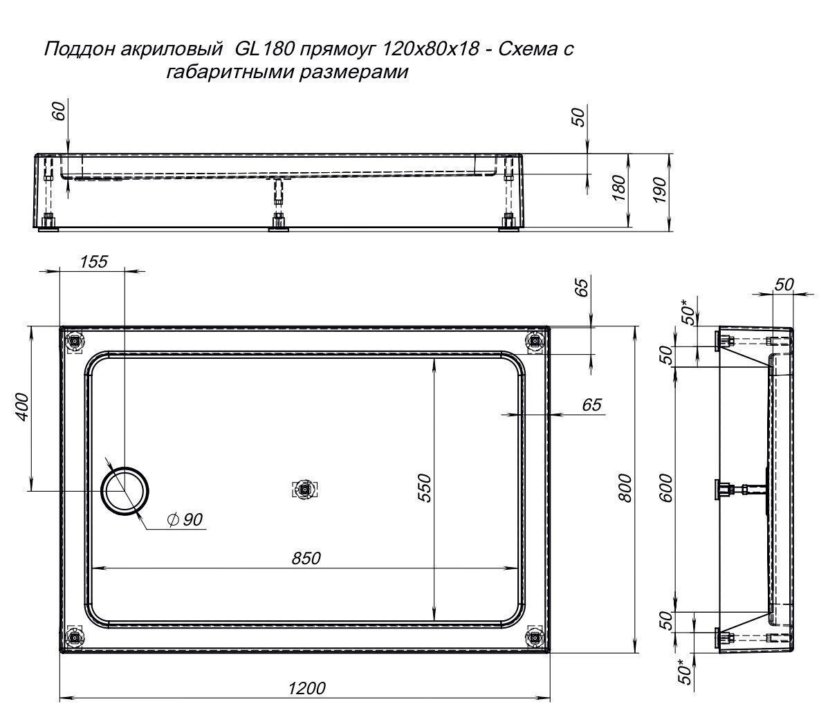 —Душевой поддон акриловый Aquanet GL180 00265565 120х80 белый без каркаса
