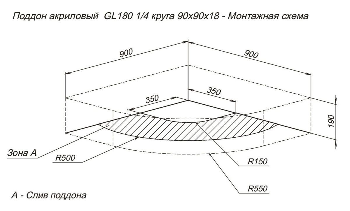 —Душевой поддон акриловый Aquanet GL180 00265571 90х90 белый без каркаса