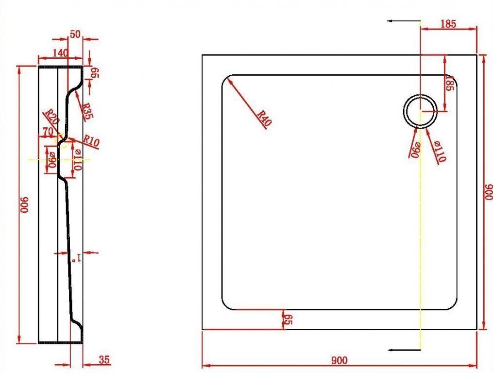 —Душевой поддон акриловый Bravat Type-S2 P19 90х90 белый с ножками