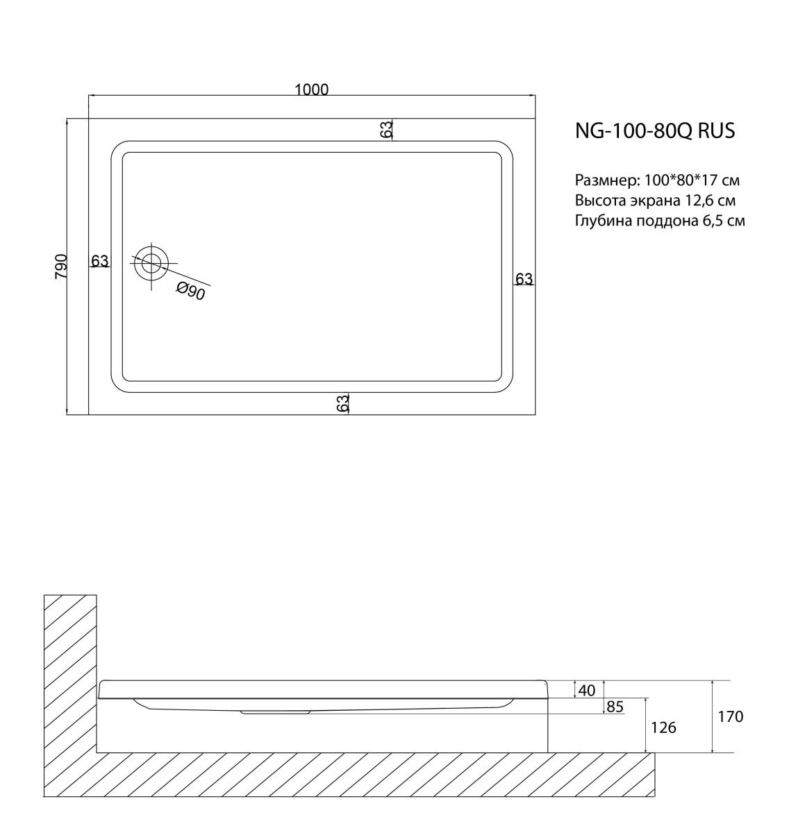 —Душевой поддон акриловый Niagara Nova 100801QRUS 100х80 белый