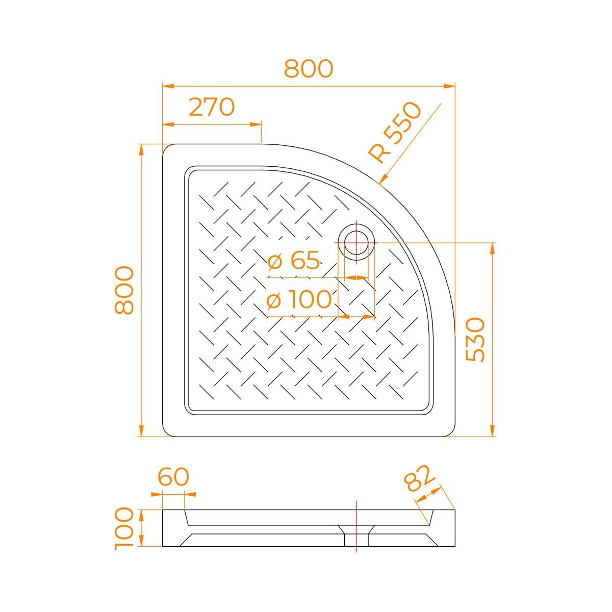 Душевые поддоны четверть круга
