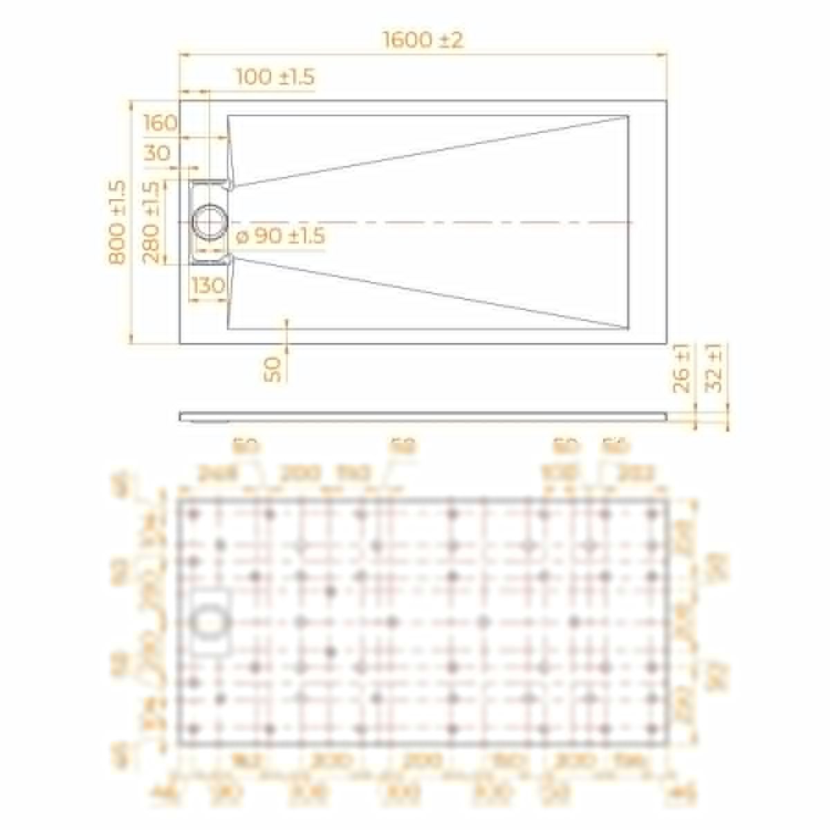 Общая высота поддона: 26 мм.;