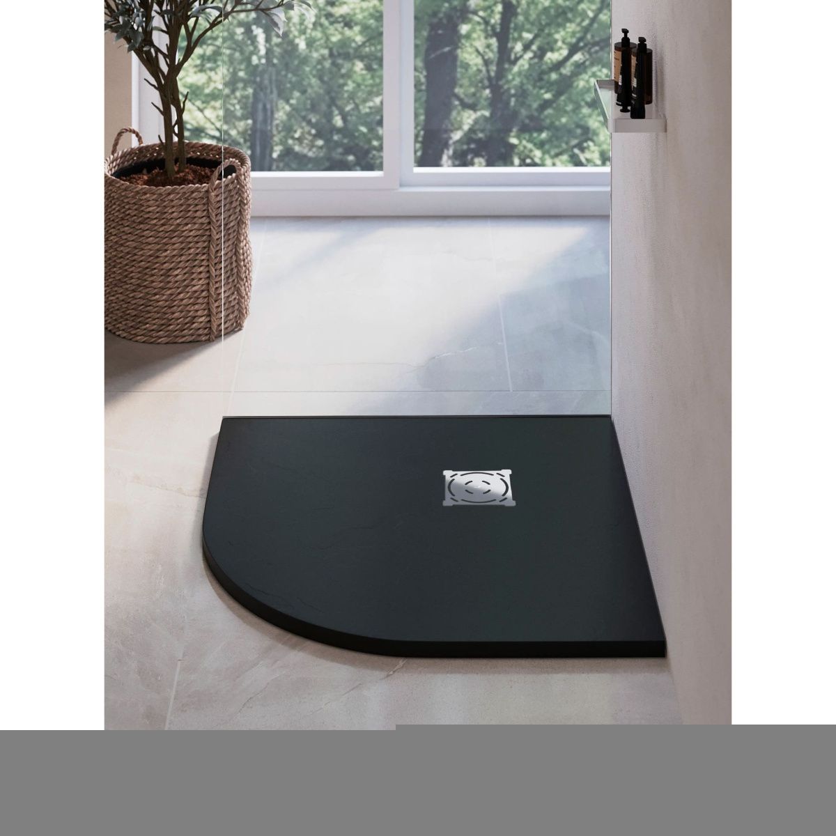 В серии душевых поддонов Stone Tray появилась новинка аккуратной полукруглой формы в остро-модном цвете «графит».