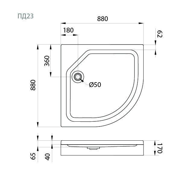 Душевые поддоны четверть круга