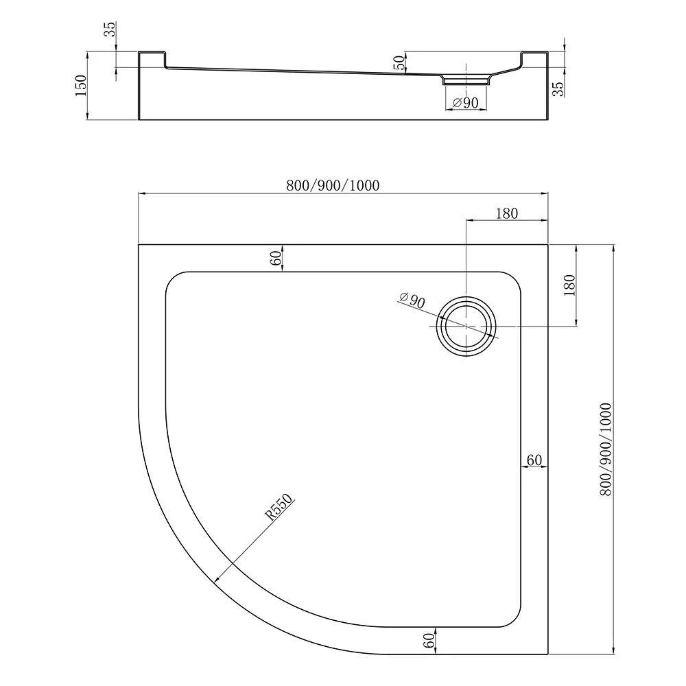 —Душевой поддон акриловый Veconi Tezeo acrylic TZ51-80-C5 80х80 белый с ножками и каркасом