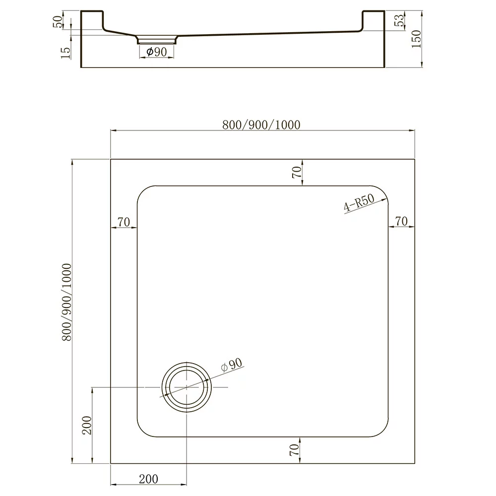 —Душевой поддон акриловый Veconi Tezeo acrylic TZ52B-80-C5 80х80 черный с ножками