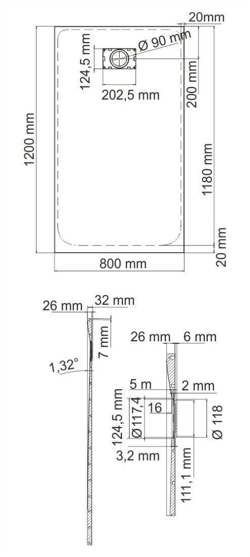 —Душевой поддон из стеклопластика Wasserkraft Main 35T 35T06 120х80 белый