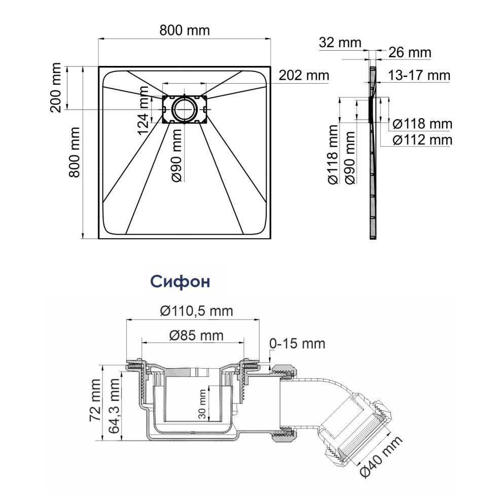 —Душевой поддон из стеклопластика Wasserkraft Main 41T 41T02 80х80 белый