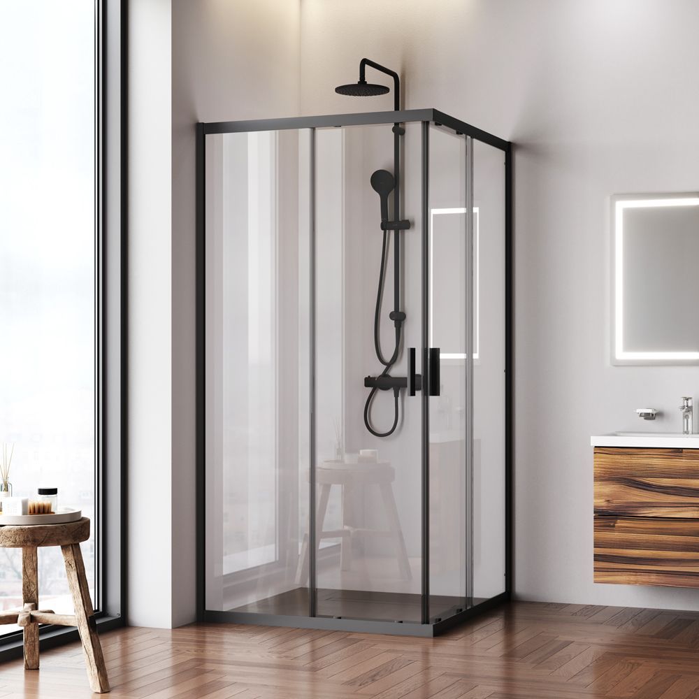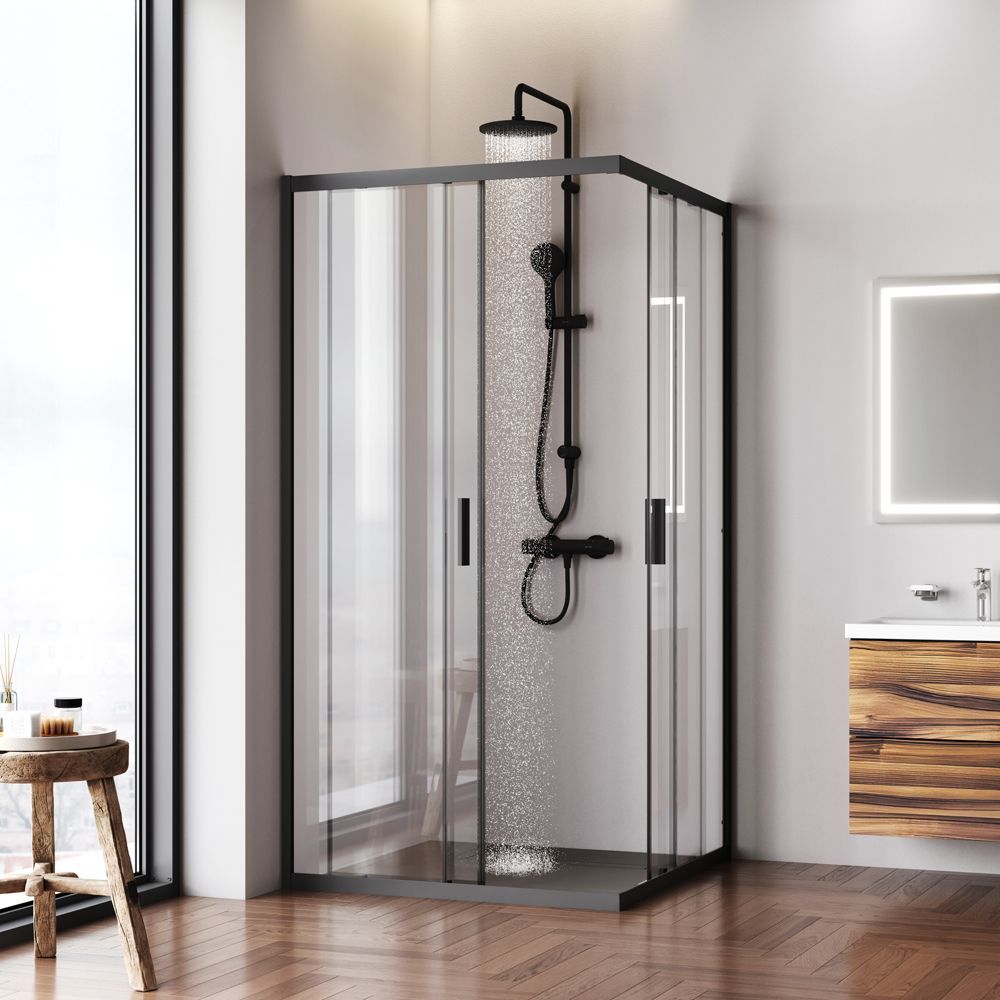Душевое ограждение выполнено из ударопрочного закаленного стекла. Толщина фиксированного стекла 5 мм  толщина стекла двери 6 мм. Профили ограждения изготовлены из надежного алюминия с премиальным анодированным покрытием. Анодирование обеспечивает равномерный насыщенный цвет и особенную стойкость к механическим повреждениям.