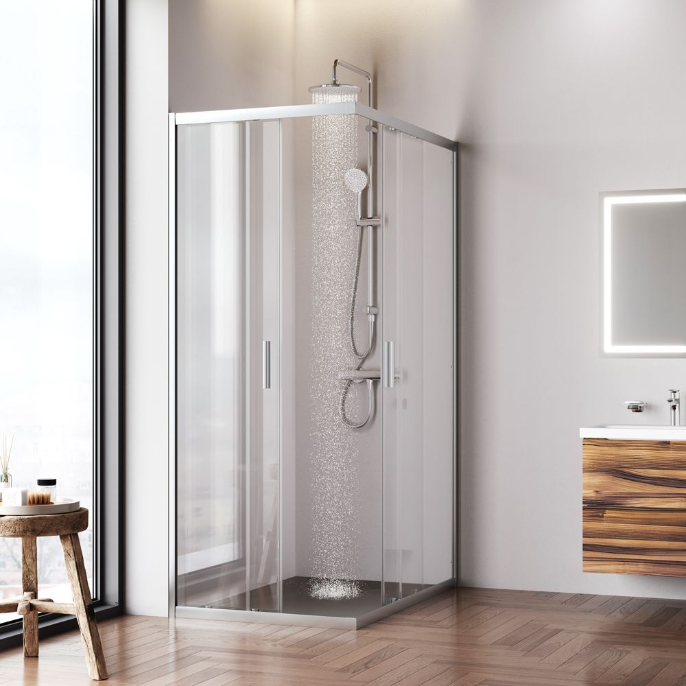 Душевое ограждение выполнено из ударопрочного закаленного стекла. Толщина фиксированного стекла 5 мм толщина стекла двери 6 мм. Профили ограждения изготовлены из надежного алюминия с премиальным анодированным покрытием. Анодирование обеспечивает равномерный насыщенный цвет и особенную стойкость к механическим повреждениям.
