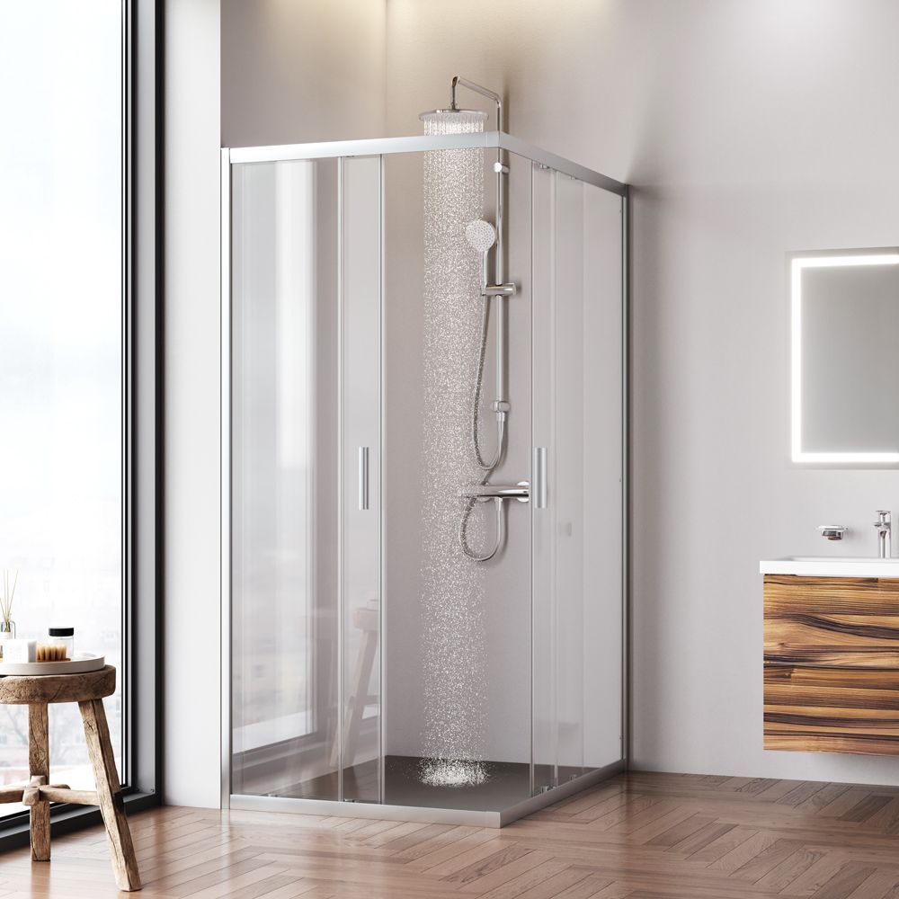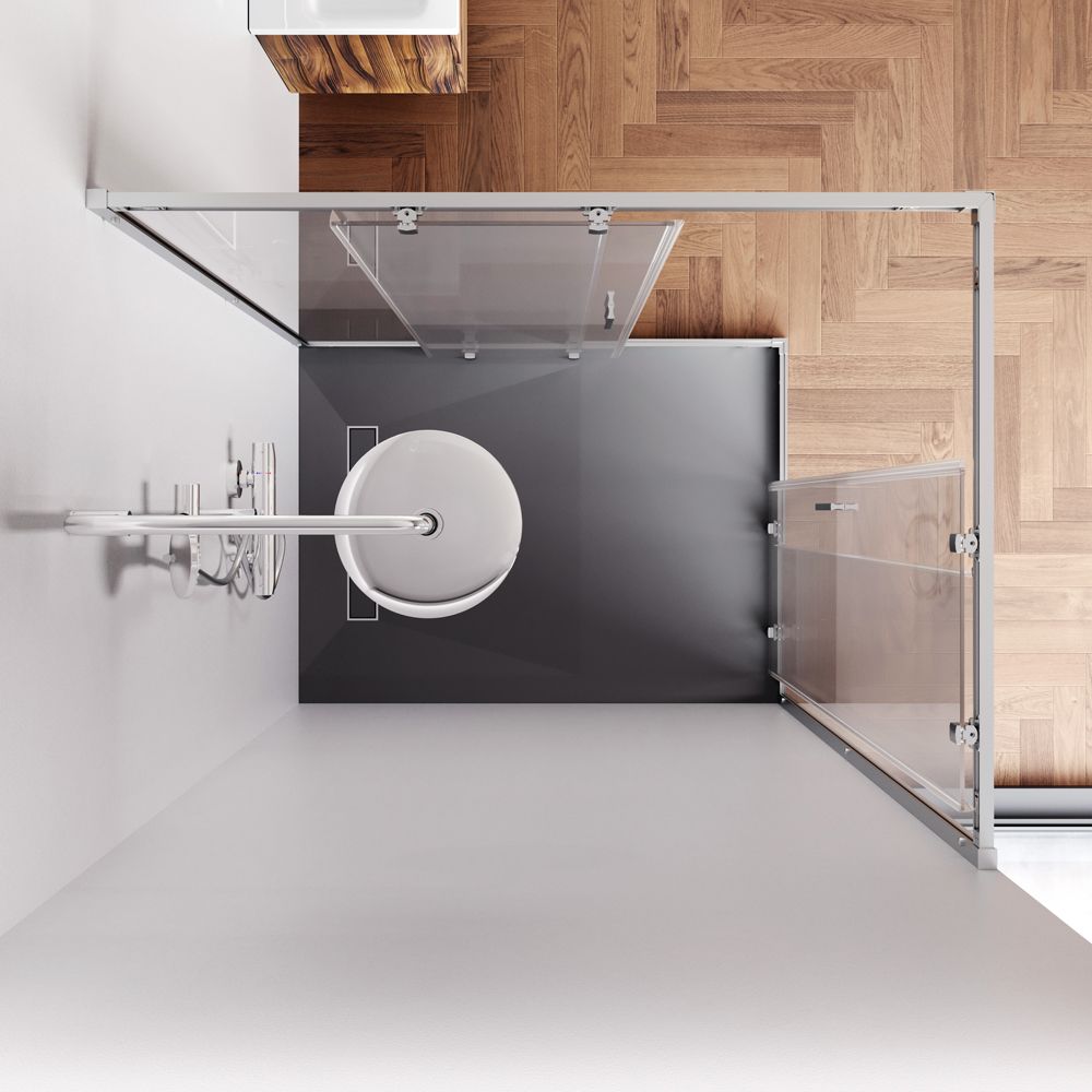 Душевое ограждение выполнено из ударопрочного закаленного стекла. Толщина фиксированного стекла 5 мм толщина стекла двери 6 мм. Профили ограждения изготовлены из надежного алюминия с премиальным анодированным покрытием. Анодирование обеспечивает равномерный насыщенный цвет и особенную стойкость к механическим повреждениям.