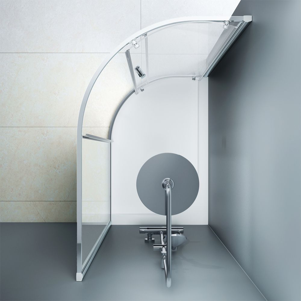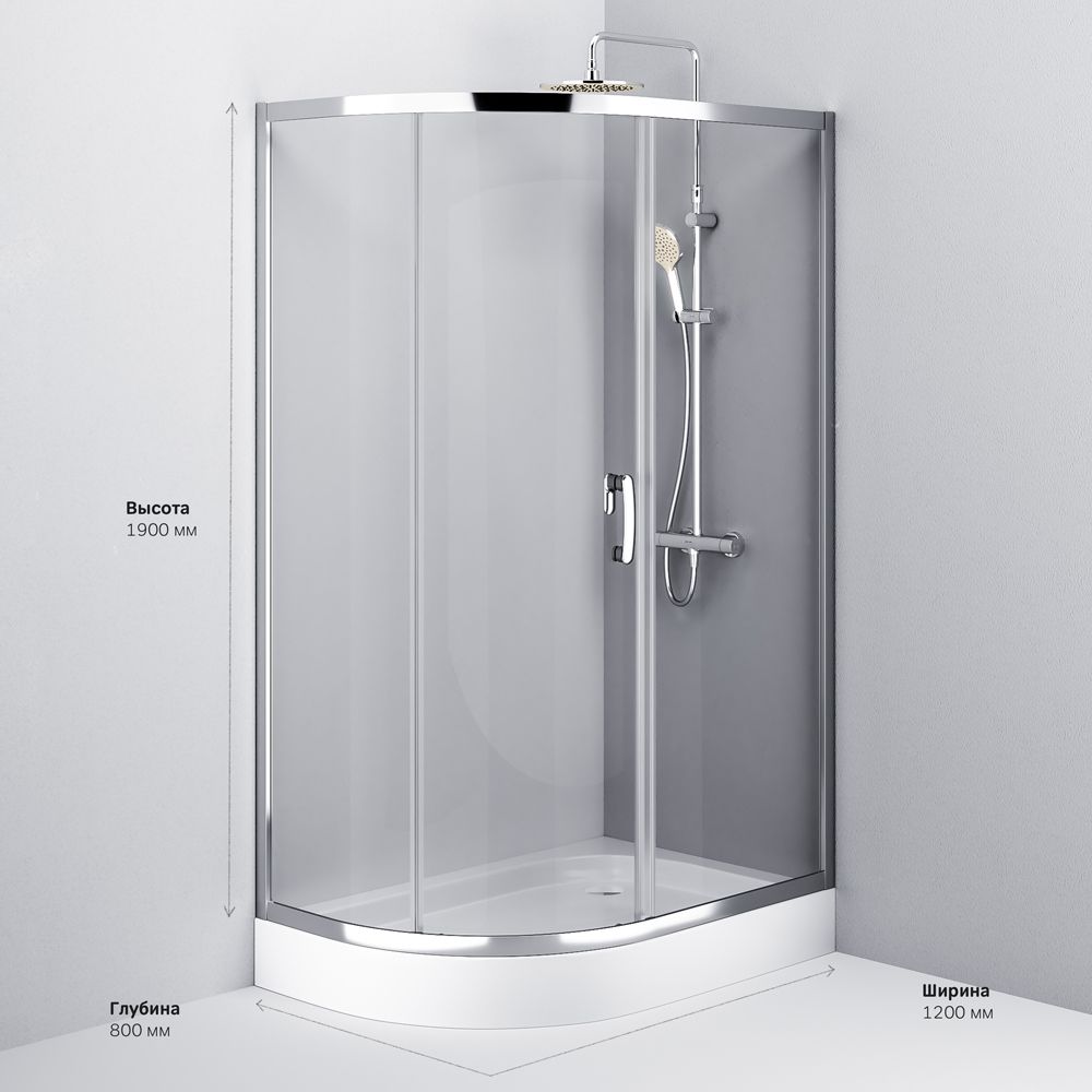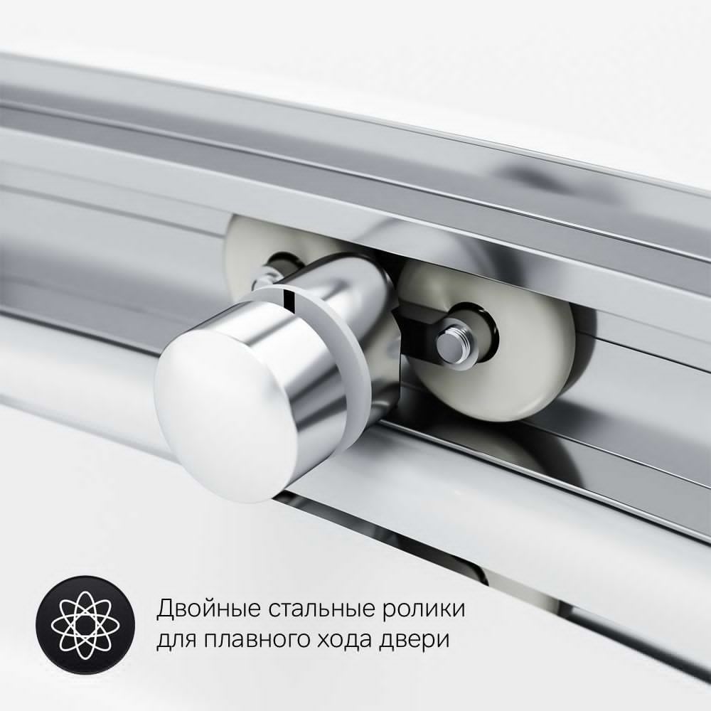 Внутреннее пространство на 15% больше чем у стандартных моделей. Увеличенный вход и внушительная высота профиля 1900 мм – с заботой о людях с высоким ростом. Двойные стальные ролики на металлоподшипнике обеспечивают надежность и плавный ход двери. Профиль хром глянцевый. Стекло прозрачное.