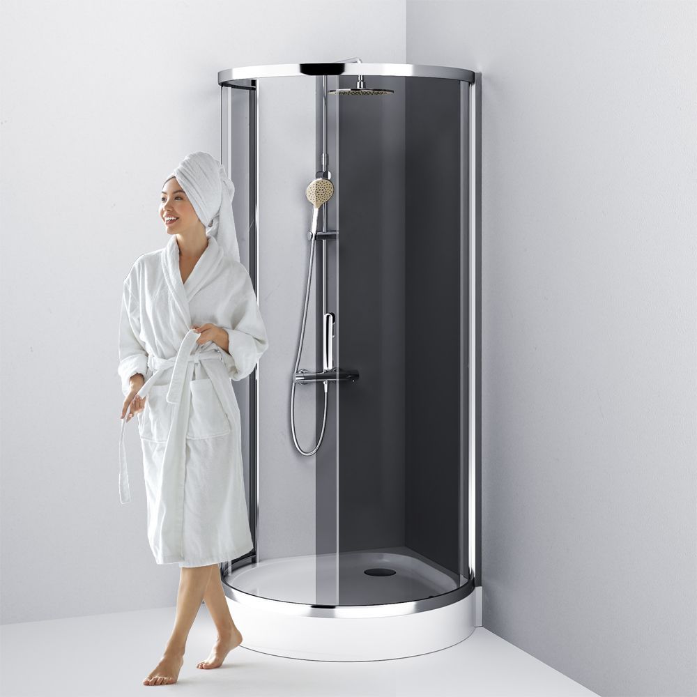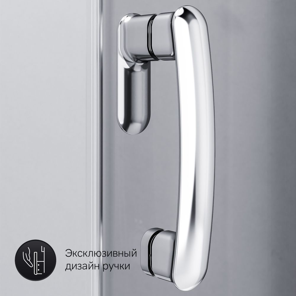 Внутреннее пространство на 15% больше чем у стандартных моделей. Увеличенный вход и внушительная высота профиля 1900 мм – с заботой о людях с высоким ростом. Двойные стальные ролики на металлоподшипнике обеспечивают надежность и плавный ход двери. Профиль хром глянцевый. Стекло тонированное.