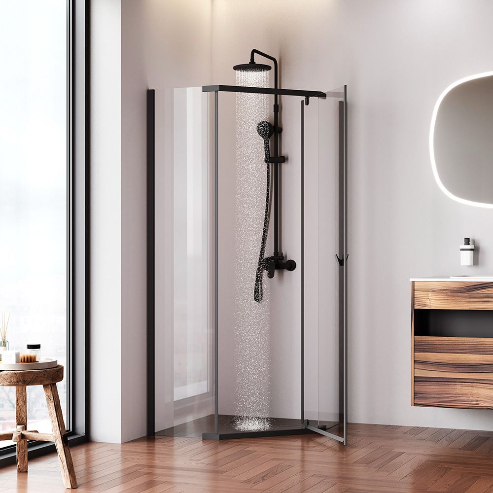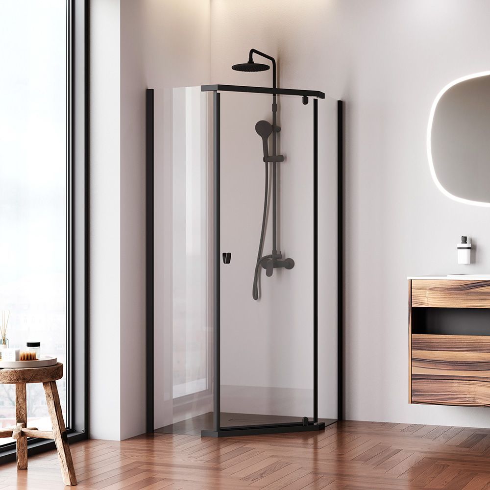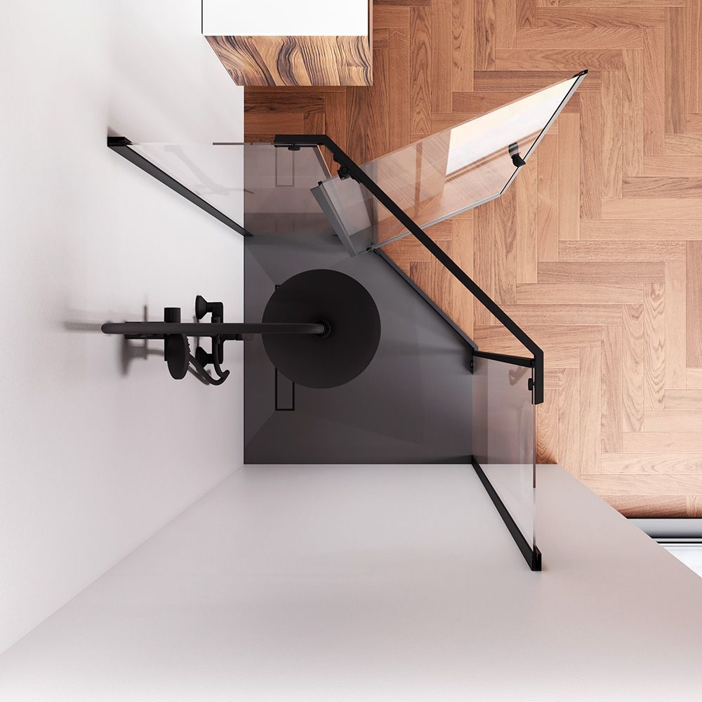 Магнитные уплотнители делают ограждение полностью герметичным и предотвращают попадание воды за пределы душевой зоны. Ограждение включает в себя уникальный решение дизайн ручки в виде крючка на который можно повесить необходимые для быстрого и удобного пользования вещи. Ручка имеет невероятно комфортный захват что позволяет открывать дверь без особого усилия.