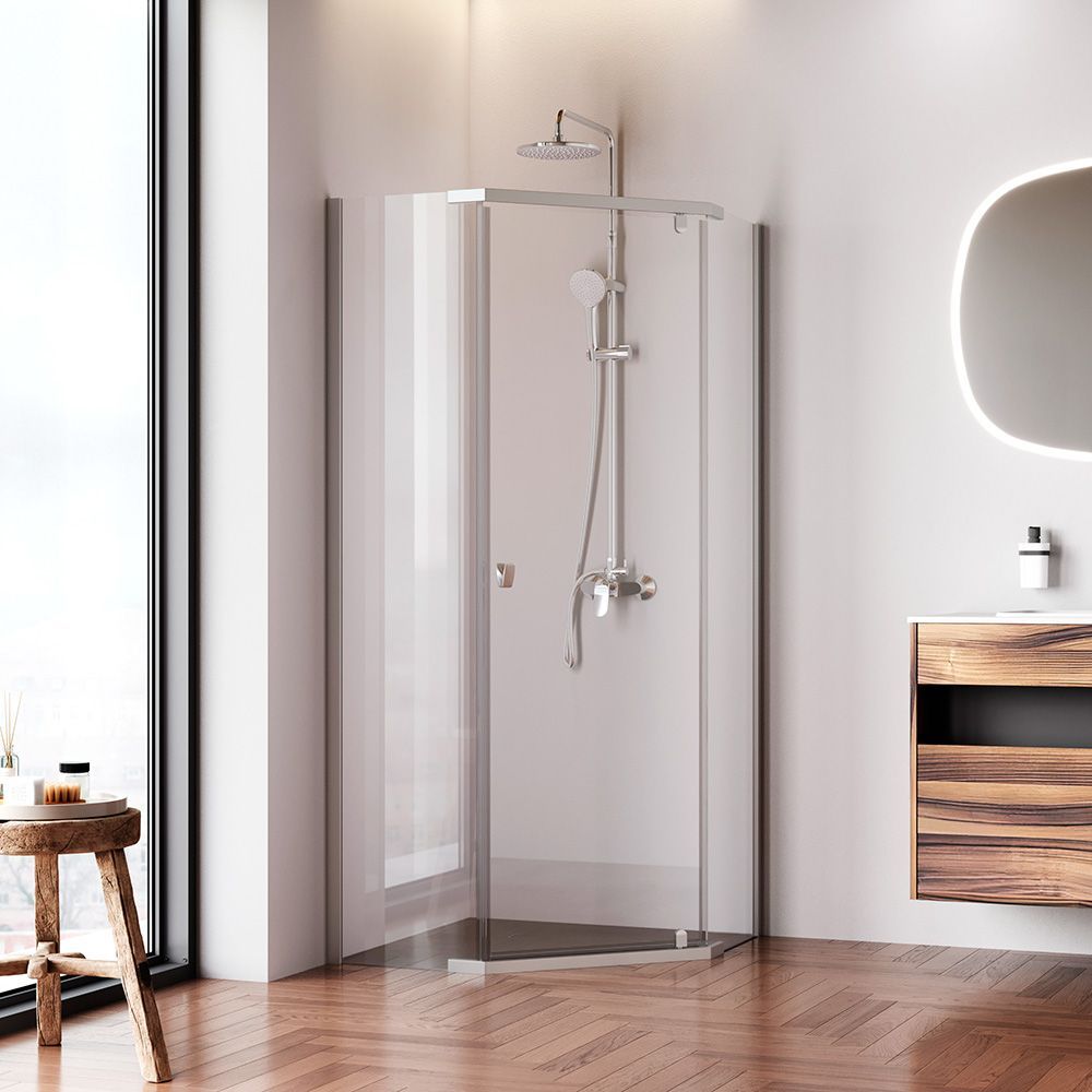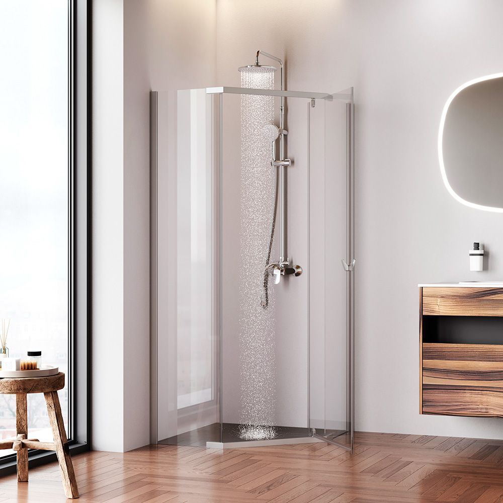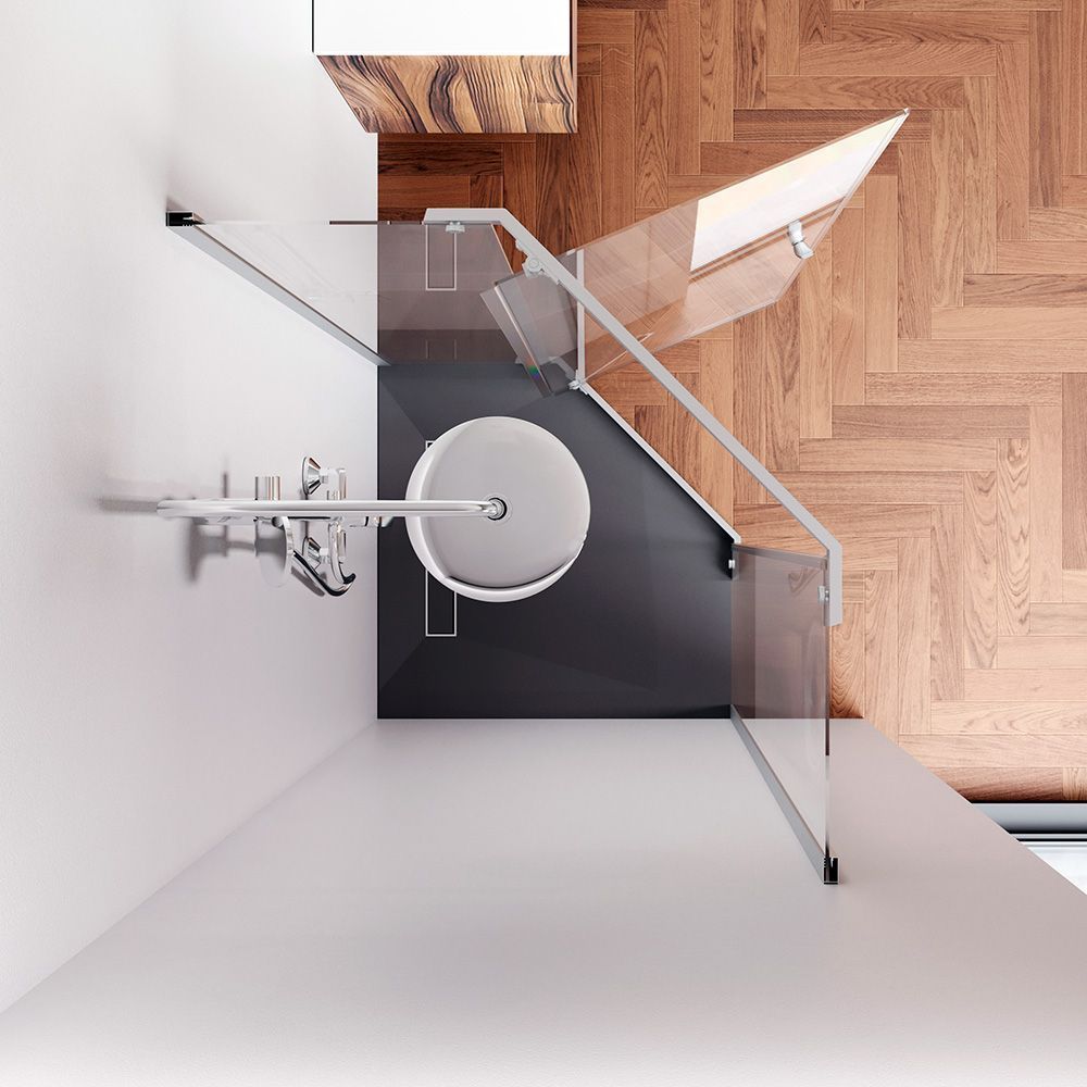 Магнитные уплотнители делают ограждение полностью герметичным и предотвращают попадание воды за пределы душевой зоны. Ограждение включает в себя уникальный решение дизайн ручки в виде крючка на который можно повесить необходимые для быстрого и удобного пользования вещи. Ручка имеет невероятно комфортный захват что позволяет открывать дверь без особого усилия.