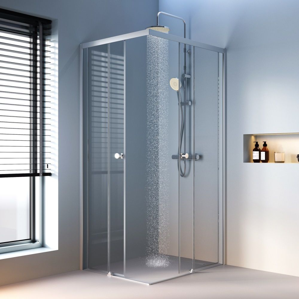 Прочная конструкция с надежными роликами увеличенного диаметра для плавного хода двери и закаленным стеклом. Толщина дверей – 6 мм. стенок – 4 мм. Беспрецедентно стойкое покрытие: надежный алюминиевый профиль окрашен методом порошкового нанесения при высокой температуре благодаря чему краска ложится на профиль идеально ровно а также проникает в структуру самого металла.