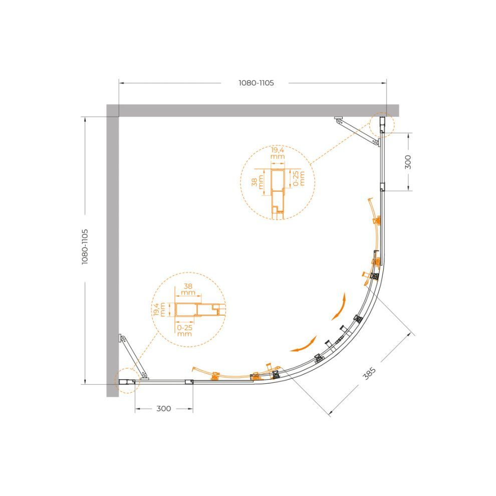 Ширина изделий до 180 см с уникальной возможностью создания еще больших размеров за счет дополнительных неподвижных элементов шириной 20 и 30 см.<br>
