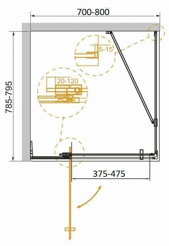 Оригинальная надёжная конструкция петли Slider позволяет регулировать ширину входа душевого ограждения в диапазоне 10 см. <br>