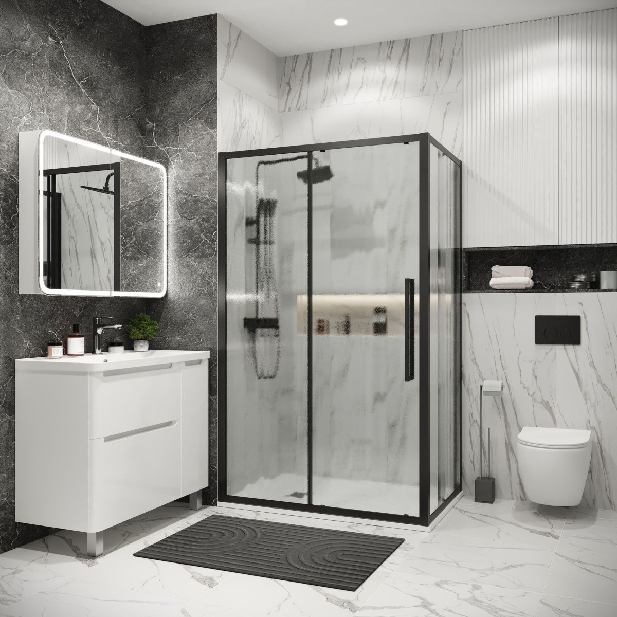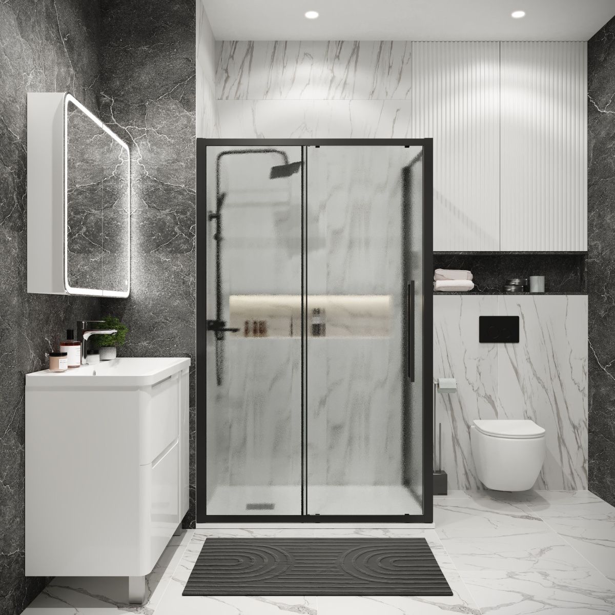 —Душевой уголок Grossman Cosmo 120.K33.02.1210.21.02 120х100 стекло шиншилла профиль черный без поддона