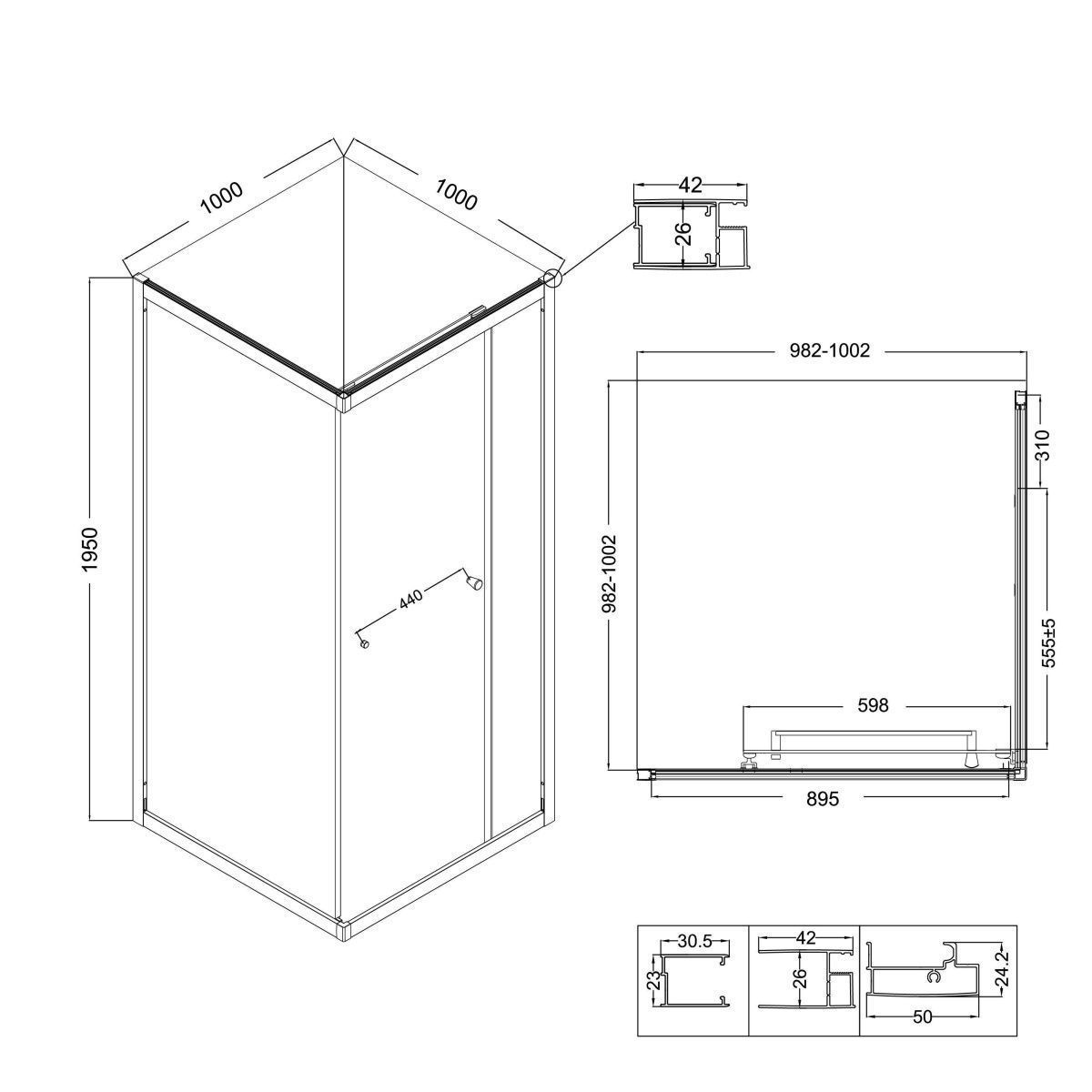 Ручка из нержавеющей стали выполняет функцию полотенцедержателя. Душевое огаждение может устанавливаться как на поддон, так и на плитку.