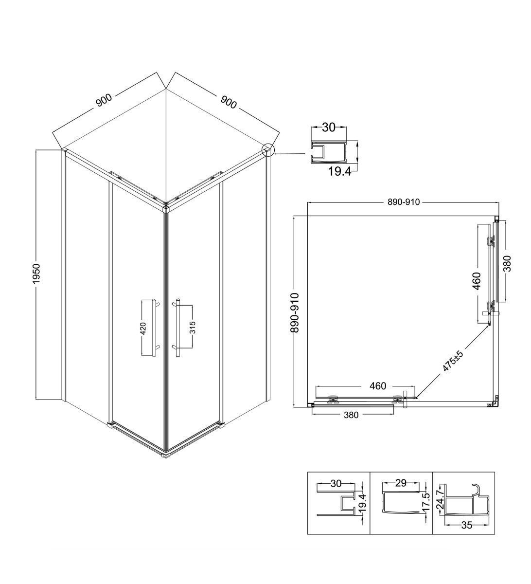 Преимуществом данного ограждения является быстрая сборка. Кроме того, пластиковые ограничители дверей легко извлекаются из профиля для удобства уборки, так как не крепятся винтами. Душевое огаждение может устанавливаться как на поддон, так и на плитку.