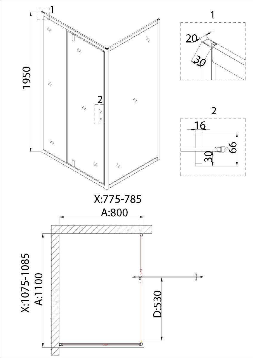 —Душевой уголок Niagara Nova NG-83-11AB-A80B 110х80 стекло прозрачное профиль черный без поддона