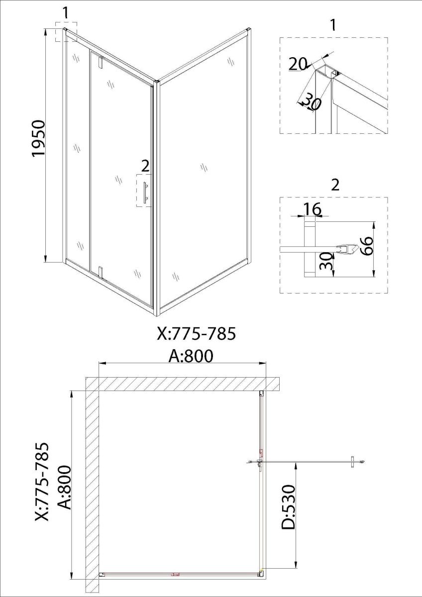 —Душевой уголок Niagara Nova NG-83-8AB-A80B 80х80 стекло прозрачное профиль черный без поддона