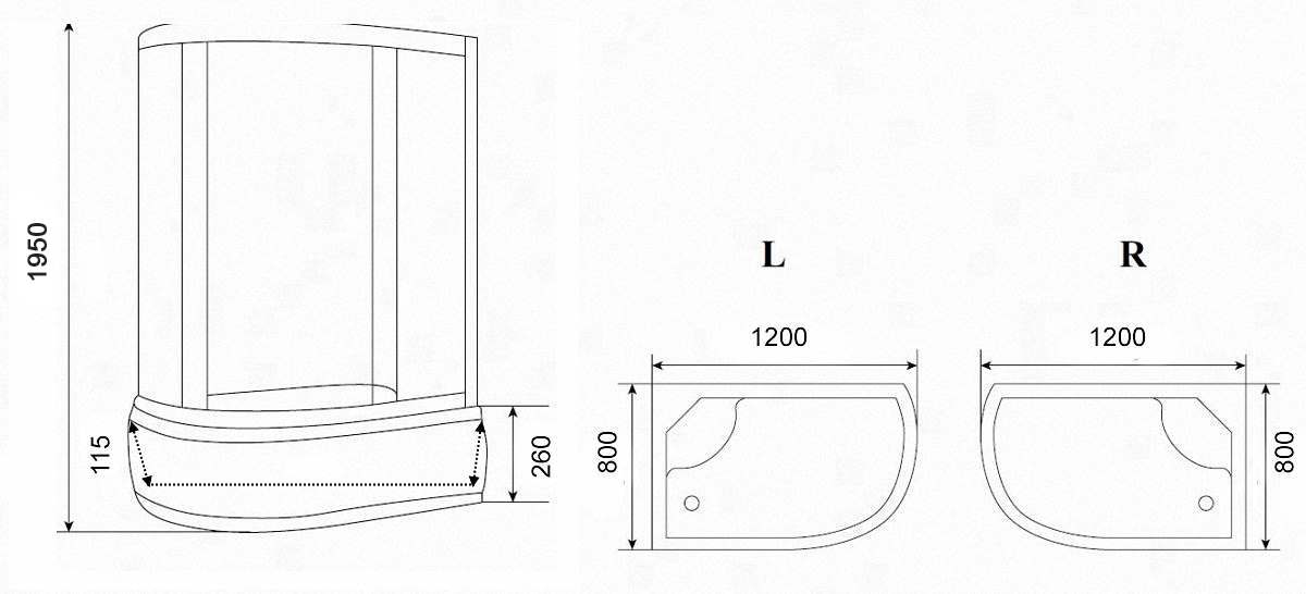 Поддон, сифон, ручки в цвет профиля - в комплекте