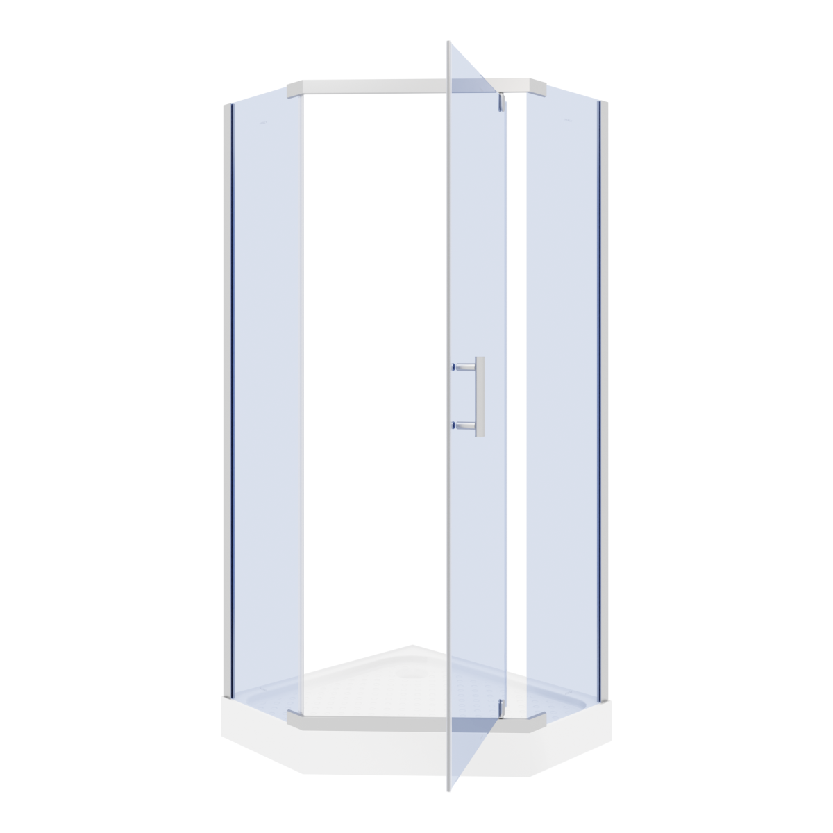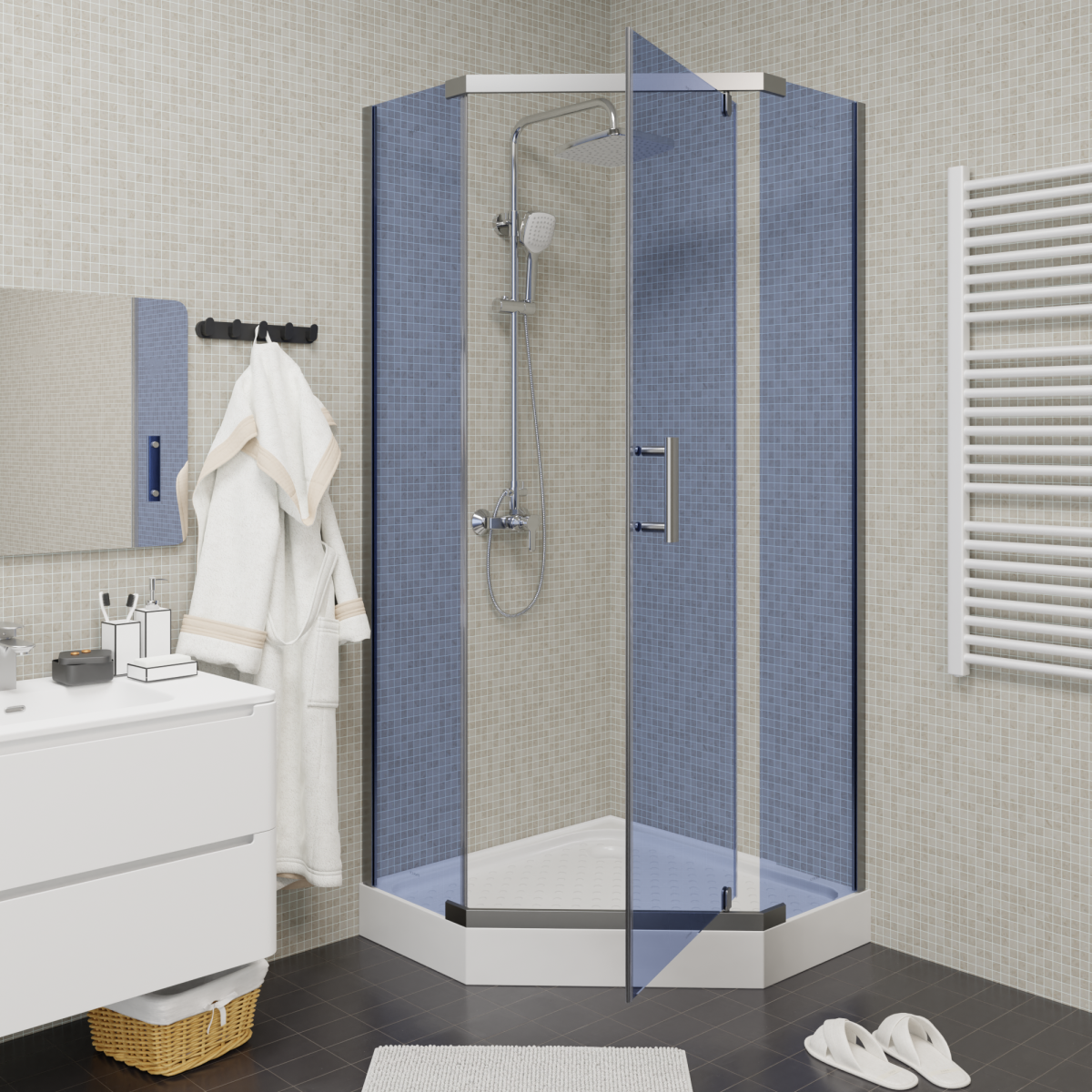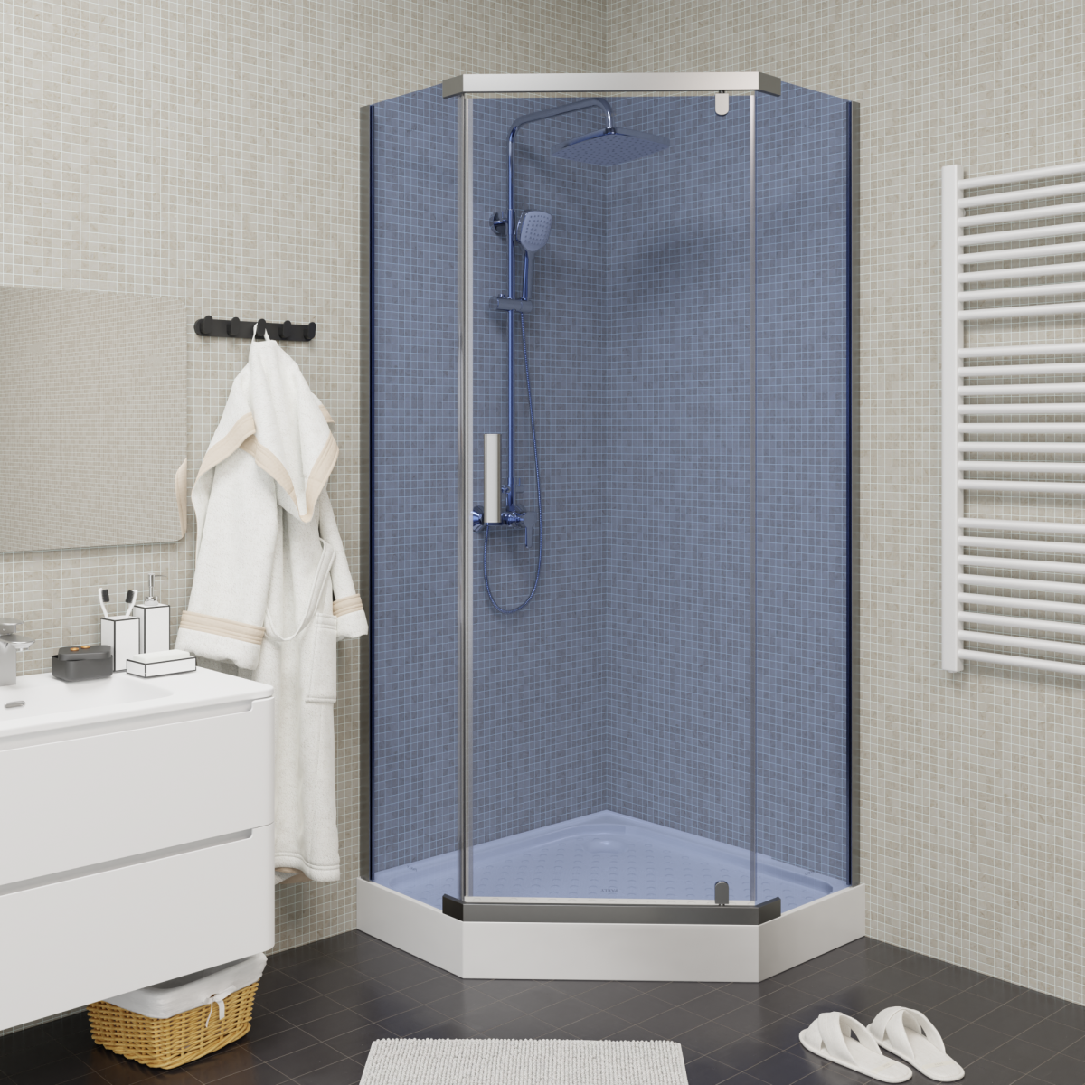 Компактный трапециевидный уголок лаконично впишется в современный дизайн санузла. Внутри душевой зоны комфортно принимать водные процедуры.