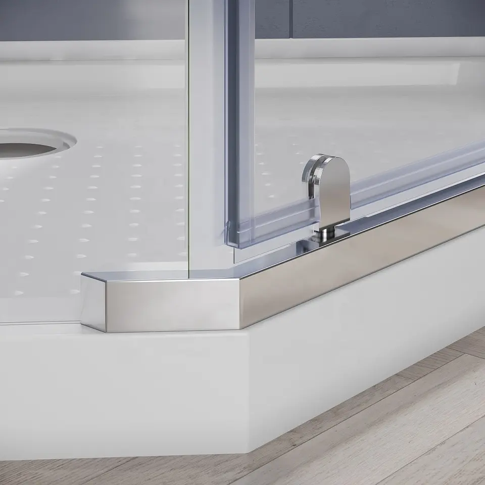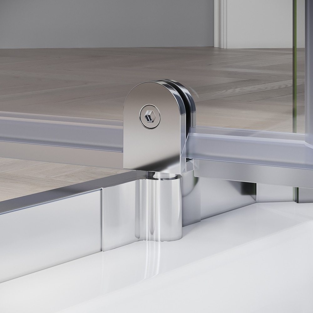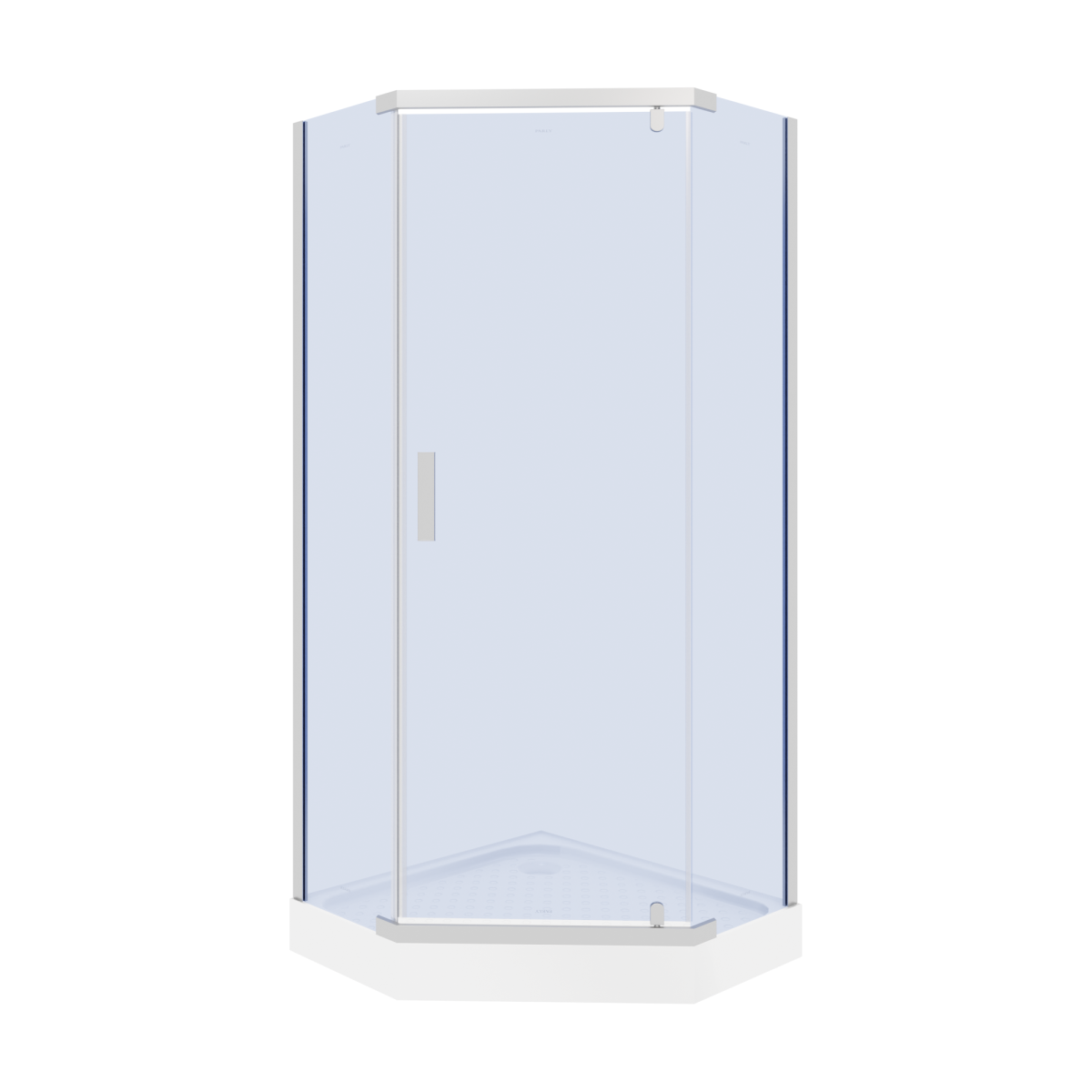 Компактный трапециевидный уголок лаконично впишется в современный дизайн санузла. Внутри душевой зоны комфортно принимать водные процедуры.