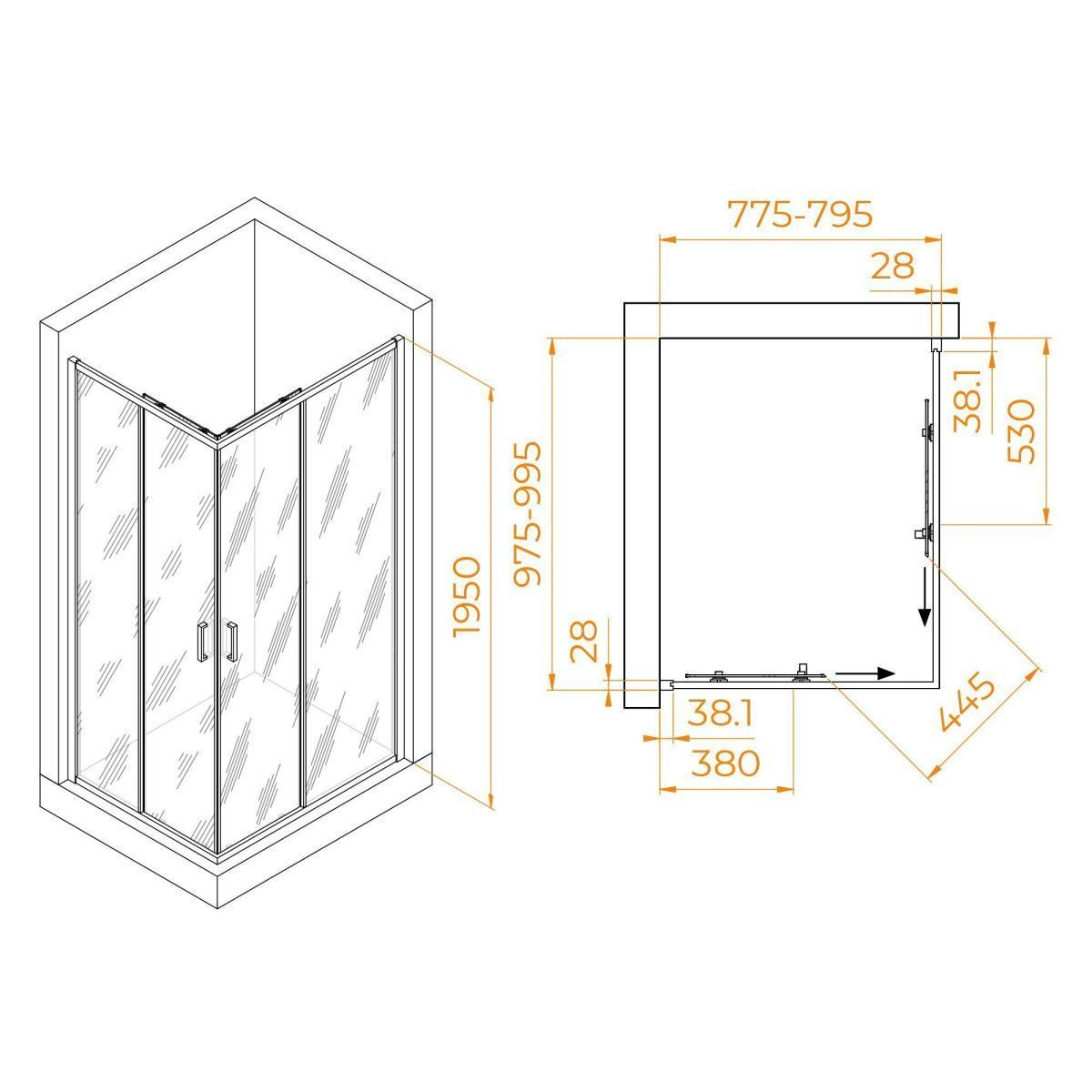 Высота душевого угла составляет 1950 мм, что позволит вам комфортно принимать душ, даже если вы высокого роста. Конструкция дверей раздвижная, что экономит место в ванной комнате. Этот душевой уголок также имеет регулируемый профиль, что позволяет легко настроить его на любые условия установки.