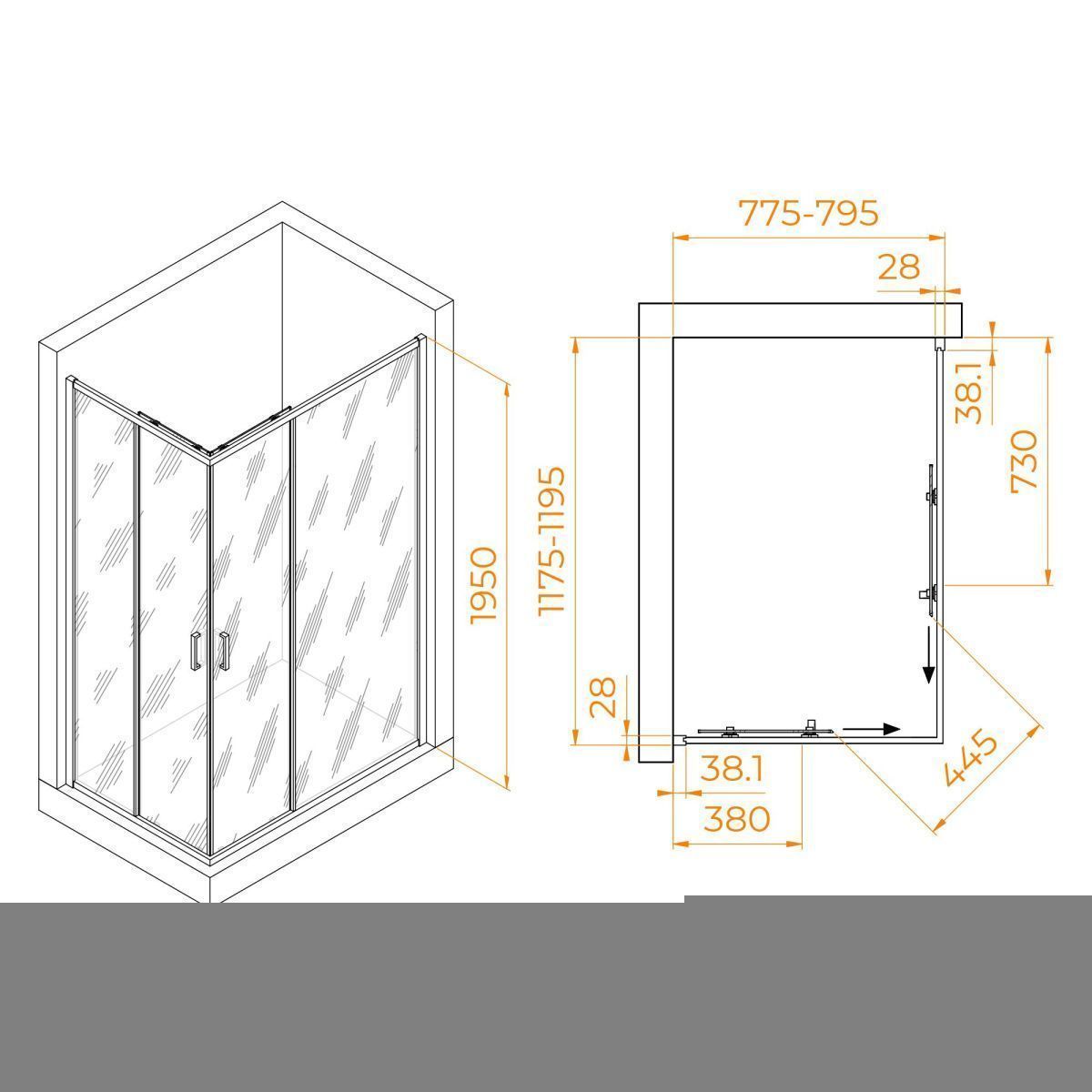 Высота душевого угла составляет 1950 мм, что позволит вам комфортно принимать душ, даже если вы высокого роста. Конструкция дверей раздвижная, что экономит место в ванной комнате. Этот душевой уголок также имеет регулируемый профиль, что позволяет легко настроить его на любые условия установки.