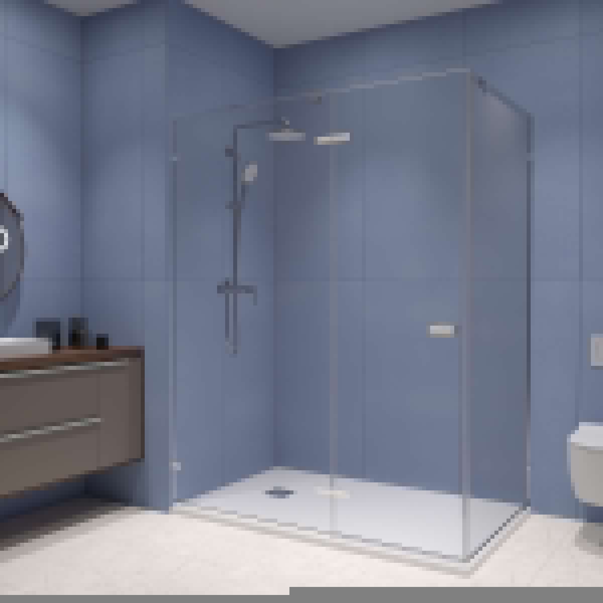 Каждый душевой угол изготовлен из высокопрочного закалённого стекла толщиной 8 мм и оснащён анодированным алюминиевым профилем ALUSTRONG MAX с усиленными коннекторами, что гарантирует надёжность и премиальный вид.