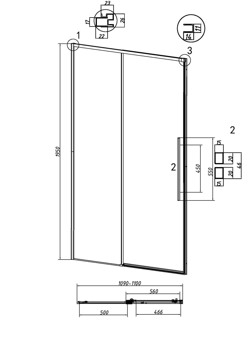 —Душевая дверь Grossman Galaxy 100.K33.01.110.21.02 110х195 стекло текстурное профиль черный