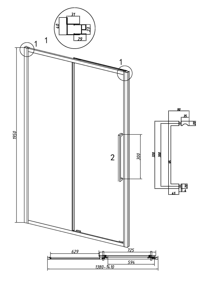 —Душевая дверь Grossman Cosmo 100.K33.02.140.21.00 140х195 стекло прозрачное профиль черный