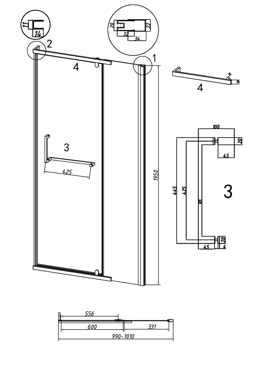 —Душевая дверь Grossman Pragma 100.K33.03.100.10.00 100х195 стекло прозрачное профиль хром