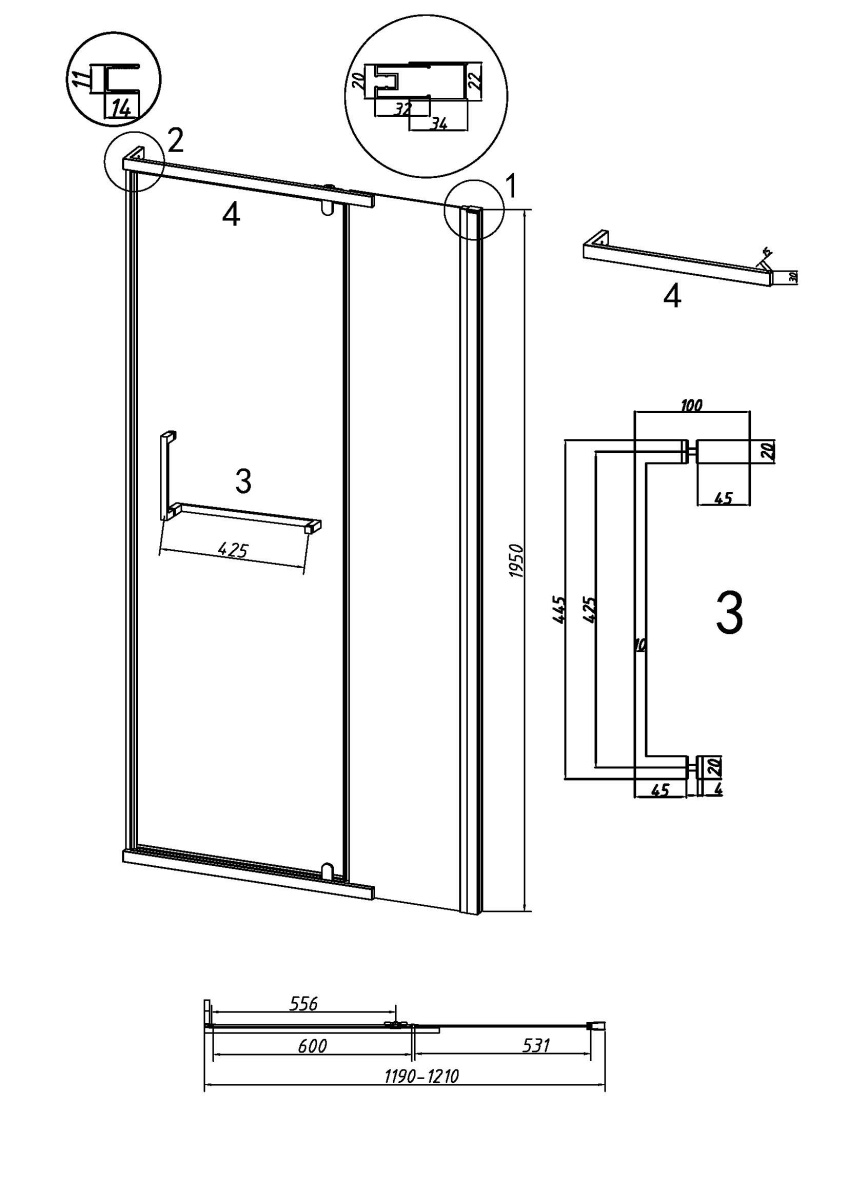 —Душевая дверь Grossman Pragma 100.K33.03.120.21.00 120х195 стекло прозрачное профиль черный