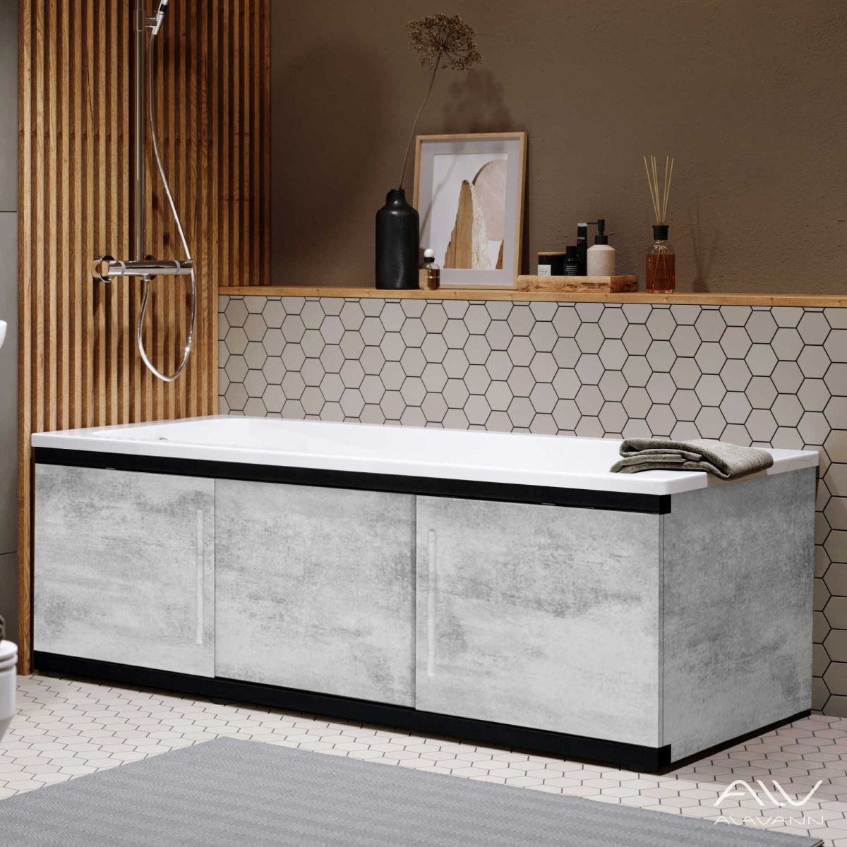 —Экран под ванну Alavann Alt 150 см ALV1201003 фронтальный МДФ раздвижной серый