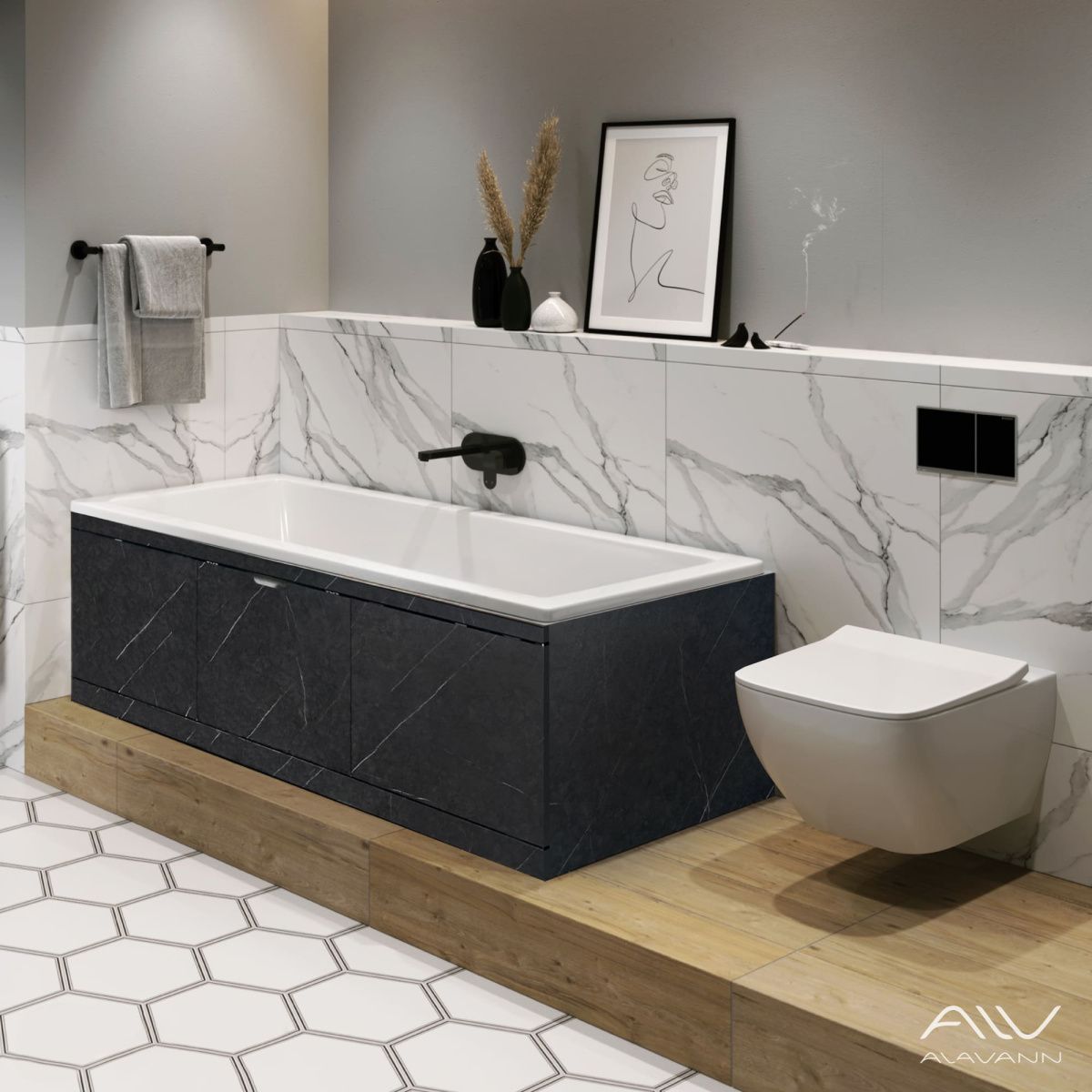 Экран под ванну Alavann Rita 170 см ALV0719006 фронтальный МДФ съемный/раздвижной черный