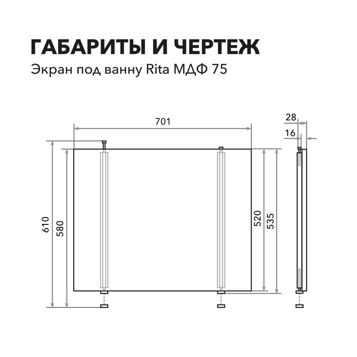 —Экран под ванну Alavann Rita 75 см ALV0768002 торцевой МДФ серый