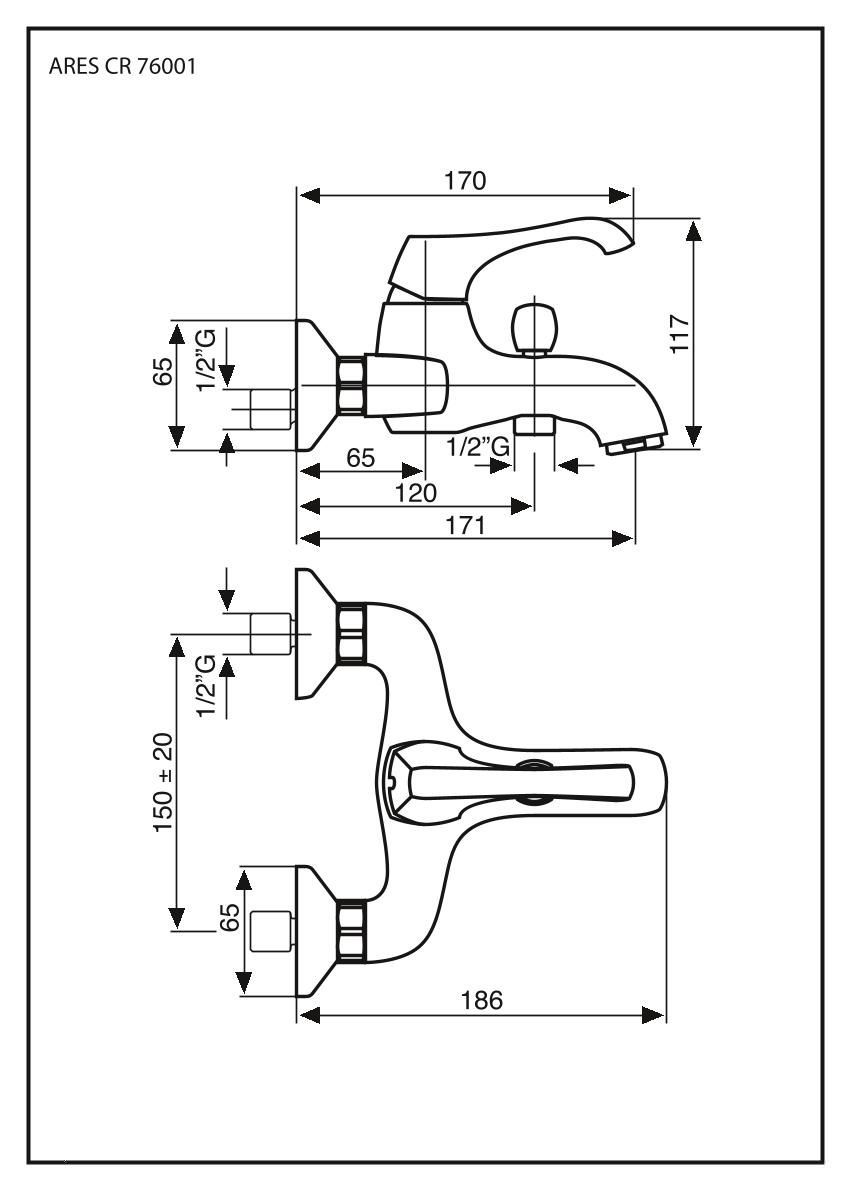 —Смеситель для ванны Emmevi Ares 76001/CR настенный хром
