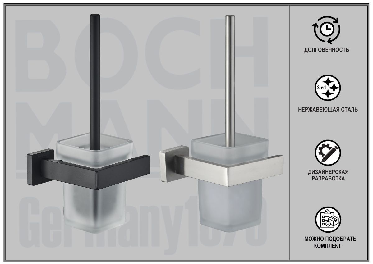 Дизайнерские аксессуары BOCH MANN стилистически завершают образ ванной комнаты, создавая целостную и продуманную концепцию. Их функциональный дизайн позволяет дополнить практически любой интерьер, а широкий ассортимент предоставляет свободу выбора. Так как срок службы аксессуаров для ванных и туалетных комнат напрямую зависит от материала, из которого они изготовлены, в производстве аксессуаров BOCH MANN используются только материалы самого высокого качества – нержавеющая сталь и закалённое стекло. Изделия из нержавеющей стали — рекордсмены по сроку службы, сохранению отличного внешнего вида и высоких эксплуатационных характеристик. Надежность конструкций аксессуаров BOCH MANN, профессиональное крепление и прочность покрытия позволяют использовать изделия не только в домашних условиях, но также и в общественных местах, включая отели и рестораны. Безупречность исполнения каждой детали, точность даже в мелочах — это признаки истинной элитарности бренда BOCH MANN.