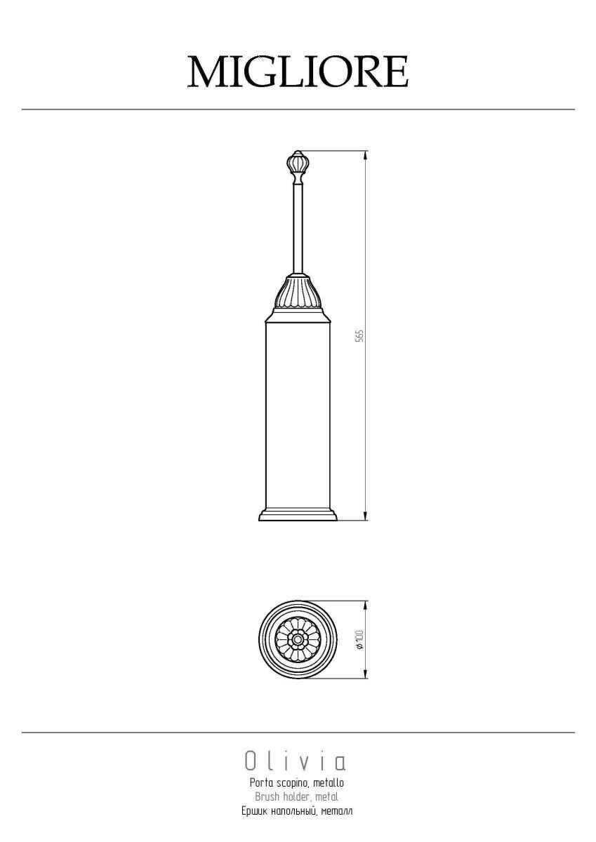 Напольный ершик коллекции OLIVIA бренда MIGLIORE - это функциональный аксессуар для ванной комнаты. Внутри латунной колбы вставлена пластиковая колба, которую легко вынуть, чтобы помыть.