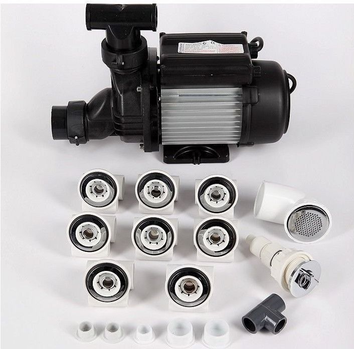 Гидромассаж "Латунь" Aquanet (8 форсунок) применяется в ваннах большого объема (свыше 400 литров), помпа мощностью 1,1 кВт. Форсунки подают мощную струю, имеют ручную регулировку направления потока воды. Этого вполне хватает для создания терапевтического давления воды. Выполнены из латуни, что обеспечивает лучшее хромирование. Плоская форсунка плотно прилегает к акрилу, поэтому не ощущается дискомфорт от выступов декоративной крышки джета. Форсунки данного типа могут быть установлены на крупные угловые, ассиметричные и объемные ванны, что позволяет создавать более сложные проекты, сочетать с различным типом форсунок, задействовать самые сложнодоступные секторы ванны. Кнопка включения гидромассажа также служит регулятором подачи воздуха. Наличие дополнительного переключателя спинного массажа делает гидромассаж более продуктивным.