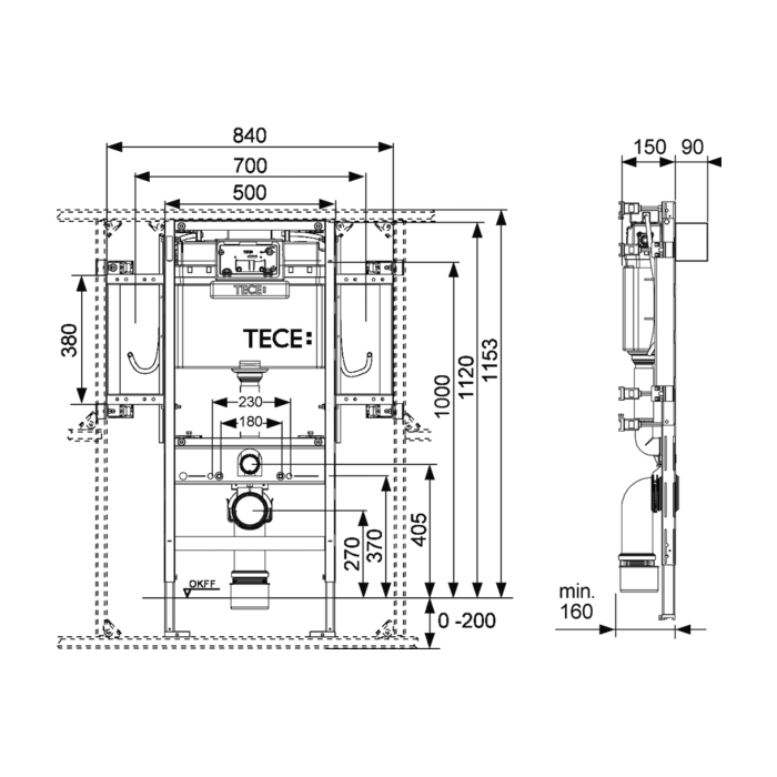 Инсталляция для унитаза для людей с ограниченной подвижностью Tece TECEprofil 9300381