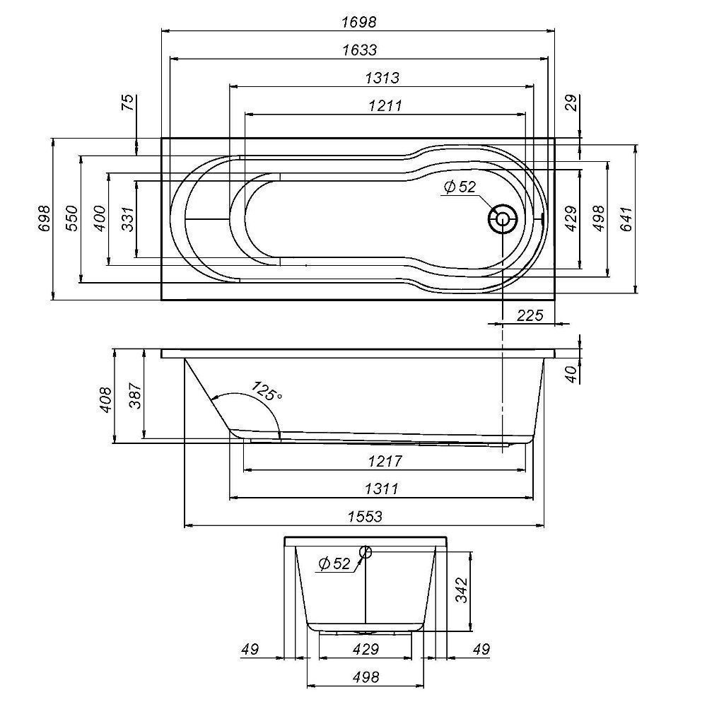 Каркас сварной с регулируемыми по высоте ножками позволяет надежно установить ванну и отрегулировать ее по высоте. Для надежной фиксации в набор входит комплект крепления к стене.