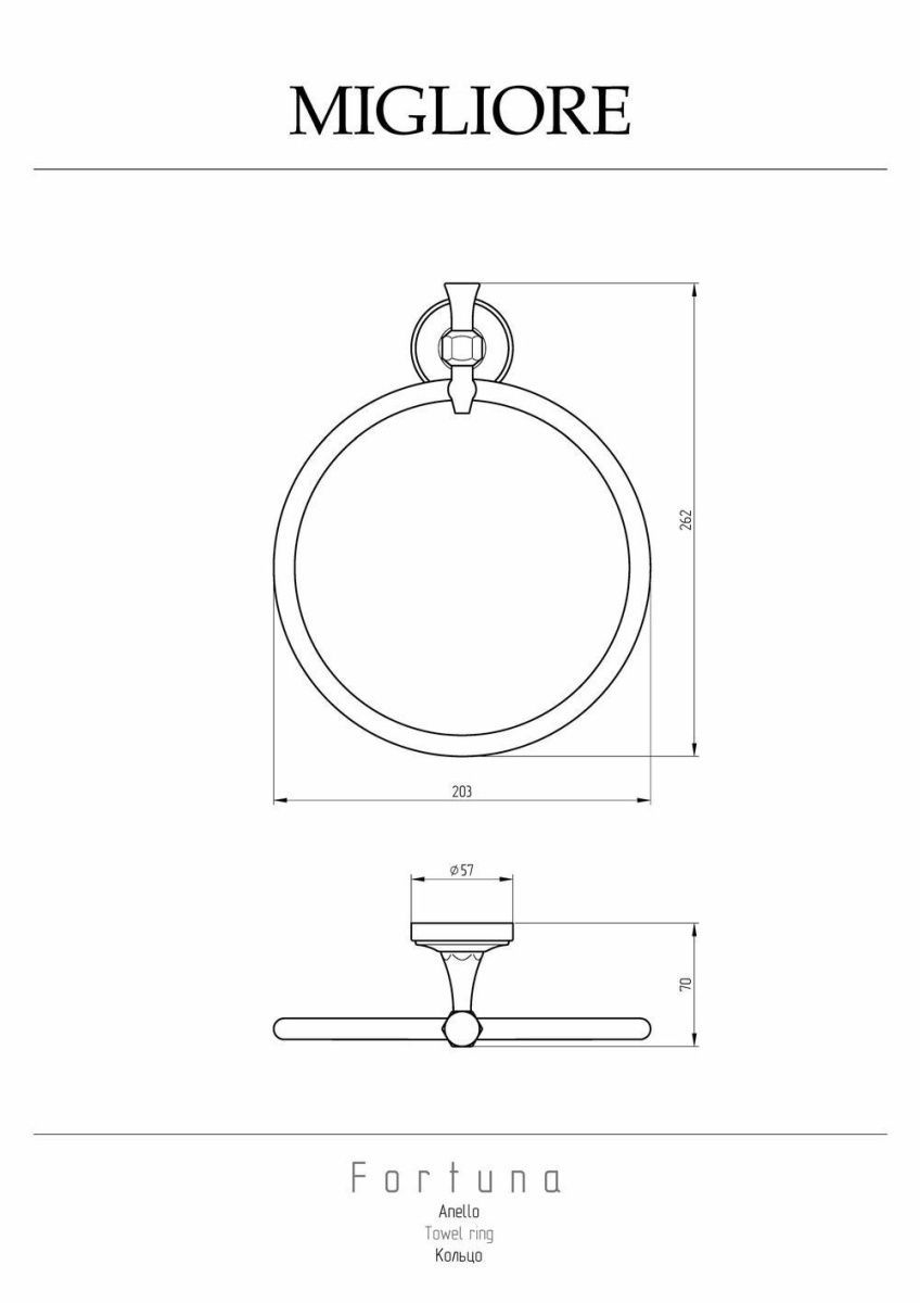 Кольцо серии FORTUNA бренда MIGLIORE предназначено для небольшого полотенчика для рук или для гигиены. Очень удобно разместить рядом с раковиной или биде. Кольцо имеет небольшой диаметр 21,5 мм и станет функциональным украшением в любой ванной комнате в классическом стиле. Изделие выполнено из латуни и имеет высококачественное хромо-никелиевое покрытие, которое при правильном уходе надолго сохранит  свой блеск. Рекомендуется использовать чистящее средство бренда MIGLIORE для смесителей и аксессуаров с хромированным покрытием.